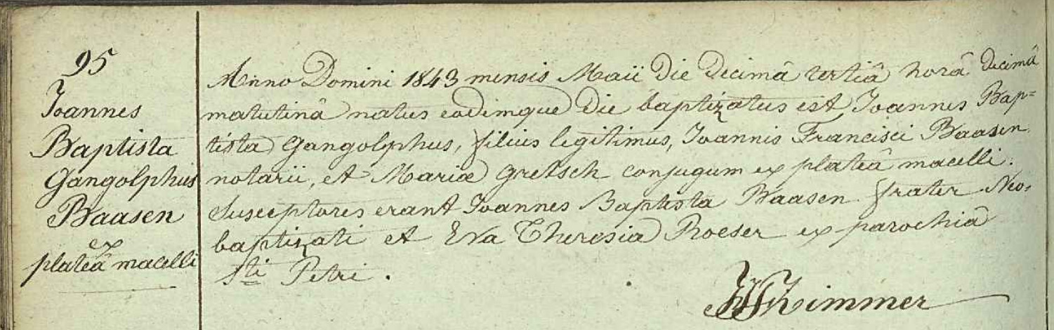 | Parents: | Jean Francois Baasen and Maria Sybella Gretsch |