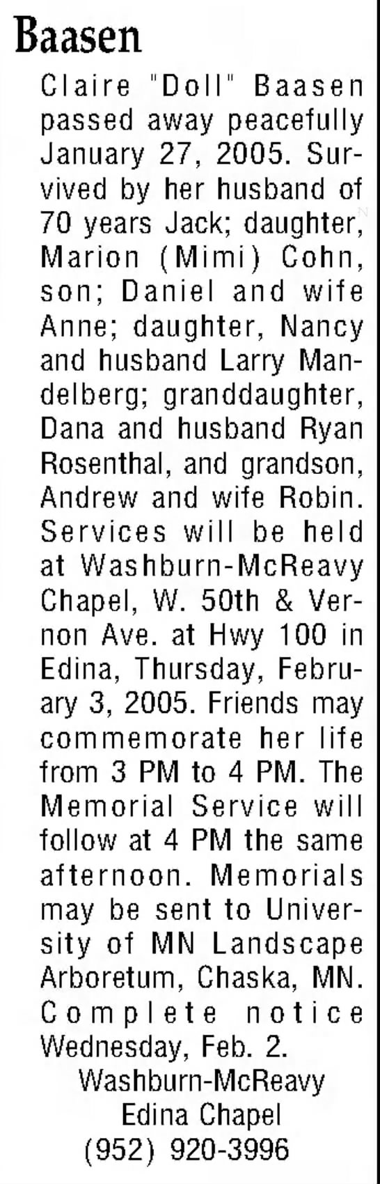 | Died: | January 27, 2005 in Minneapolis, Hennepin Co, MN. View Obituary |