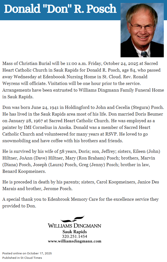 | Died: | October 15, 2025 in St. Cloud, Sherburne Co, MN. View Obituary |