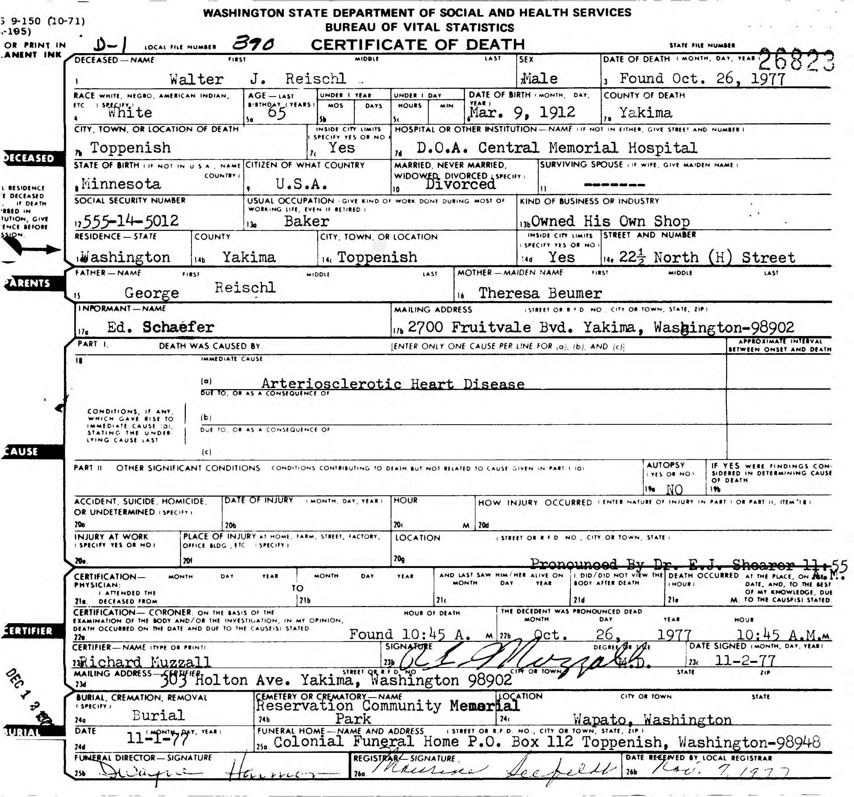 - Death Certificate - Death certificate for Walter
