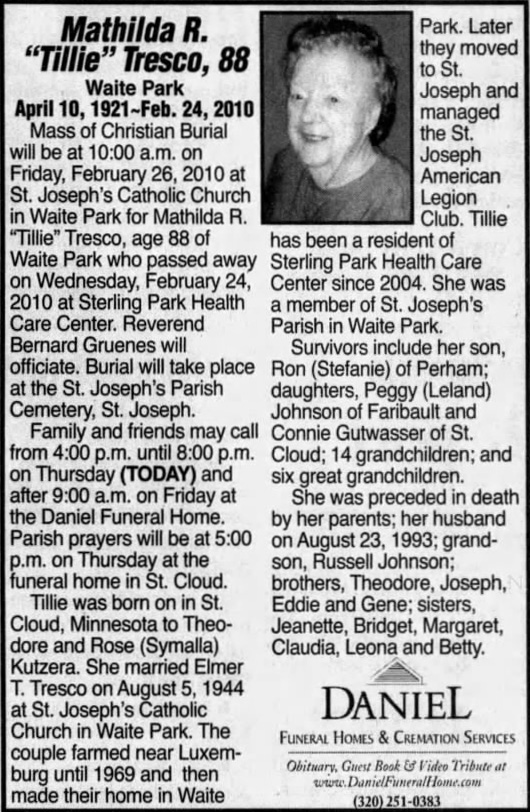 - 1930 Census - St. Augusta Township, Stearns Co, MN (Listed as Elmer, age 6, son of Fred Tresco)