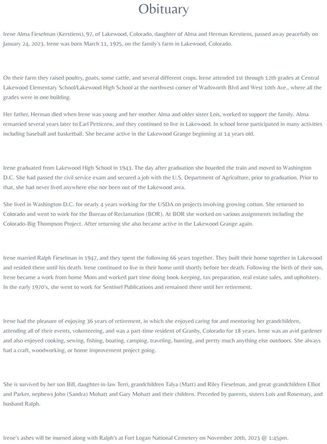 | Died: | January 24, 2023 in Lakewood, Jefferson Co, CO. View Obituary |
