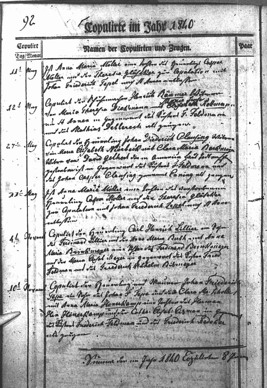 Casper married Anna Maria Louise Rotmann on May 12, 1840 in Riemsloh, Osnabrück, Lower Saxony, Germany.