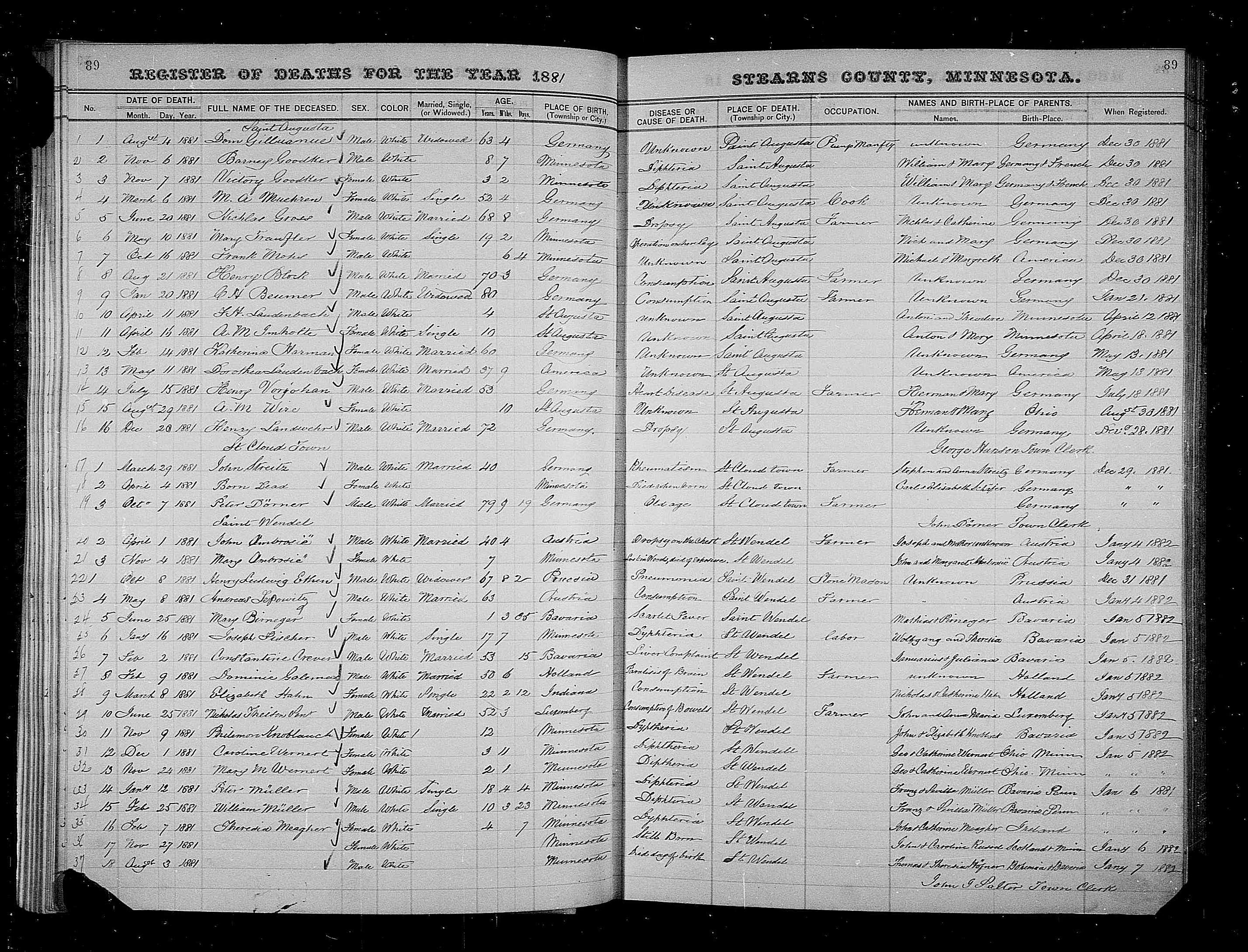 | Died: | January 20, 1881 in St. Augusta, Stearns Co, MN. |