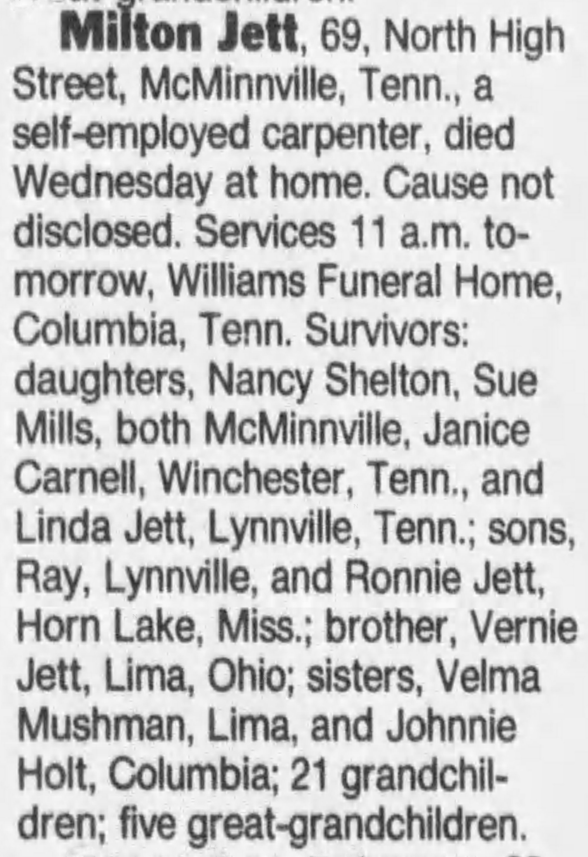 | Died: | November 8, 1995 in McMinnville, Warren Co, TN. View Obituary |