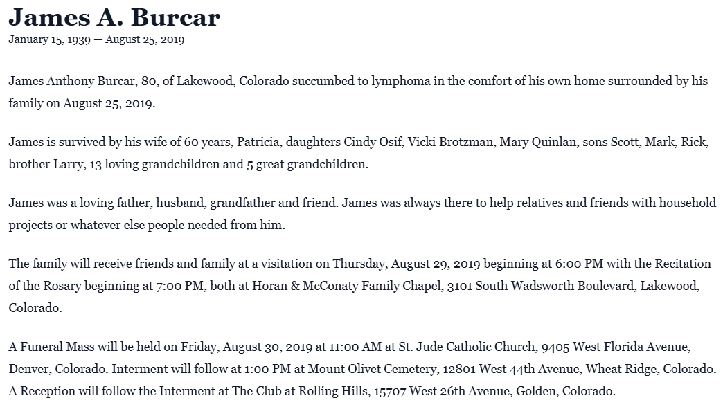 | Died: | August 25, 2019 in Lakewood, Jefferson Co, CO. View Obituary |