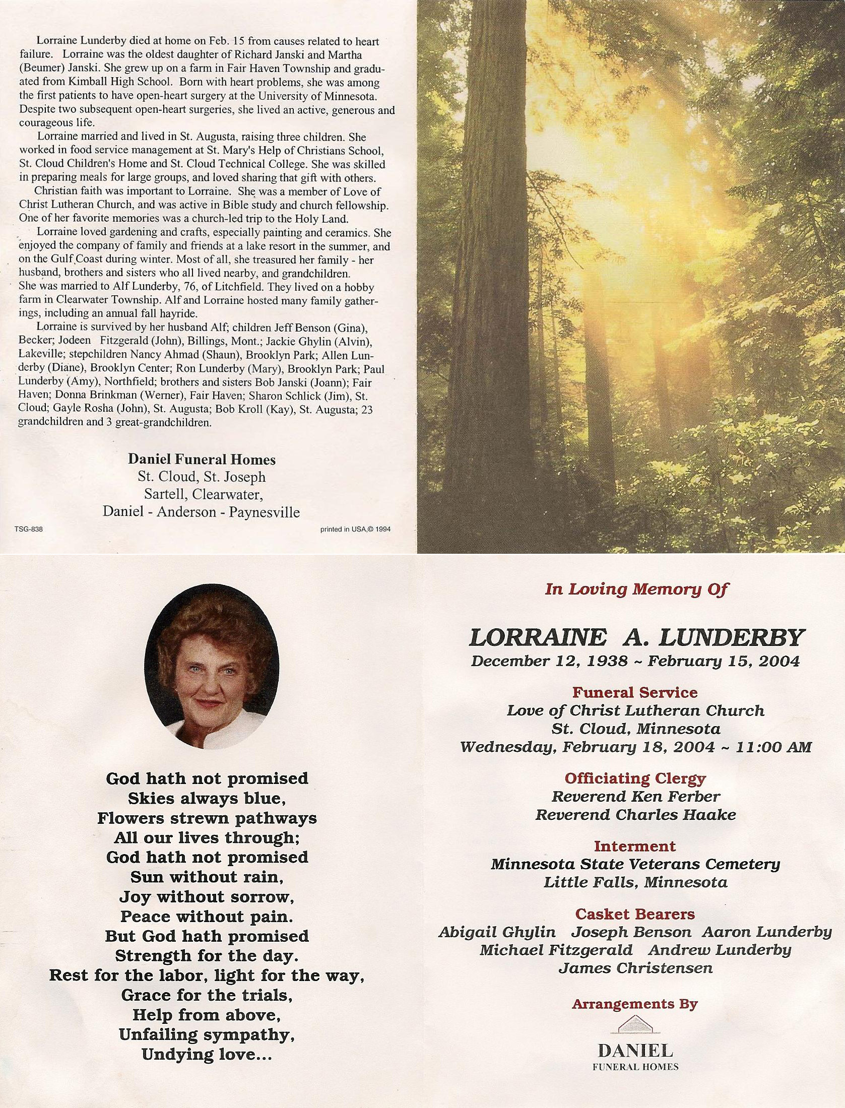 Lorraine married Alf Rueben Lunderby on October 27, 1979.
