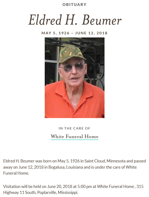 - 1940 Census - Lakin Township, Morrison Co, MN (Listed as Eldred, age 13, son of H. J. Beumer)