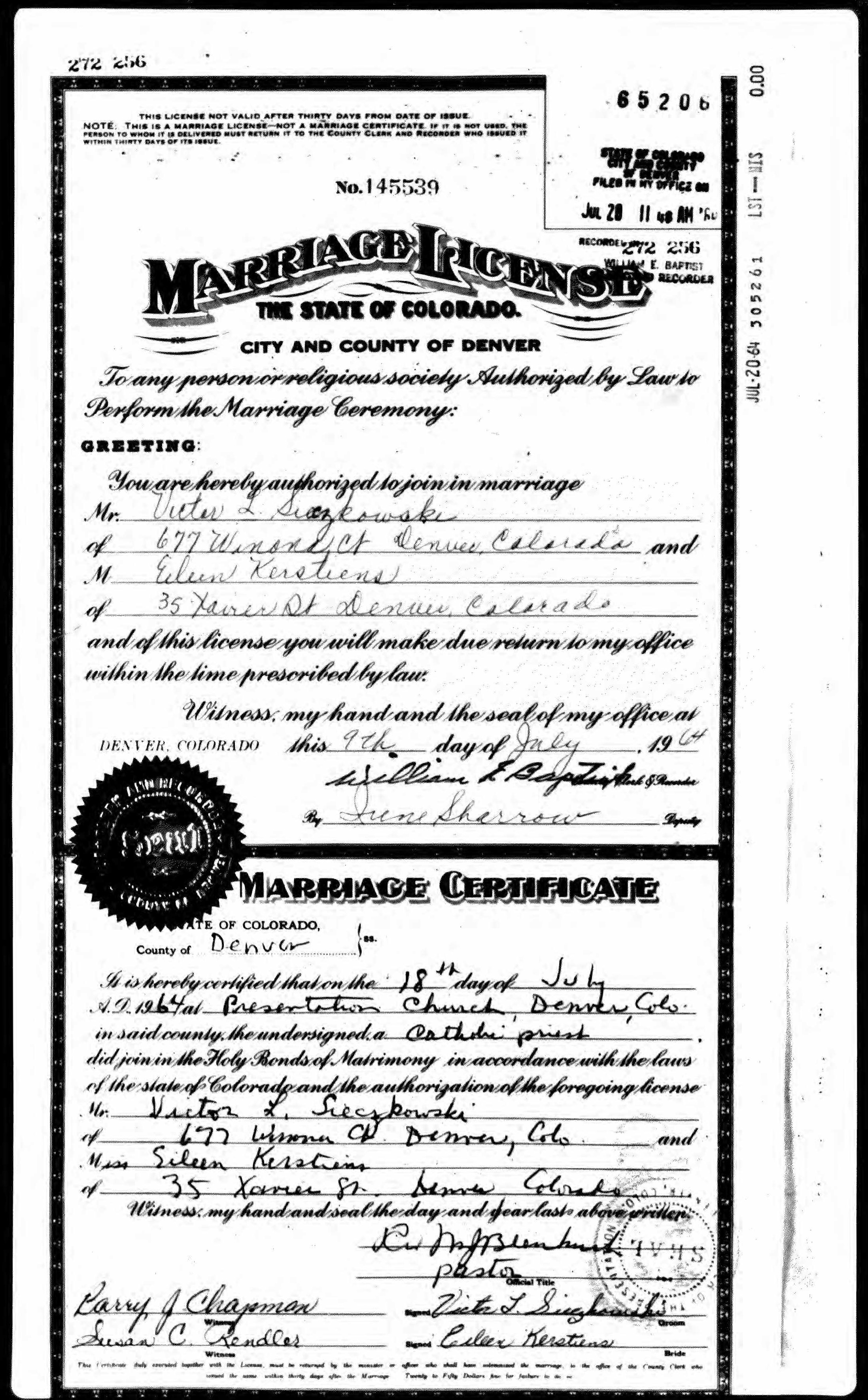 - Marriage Records - Marriage records for Victor and Eileen