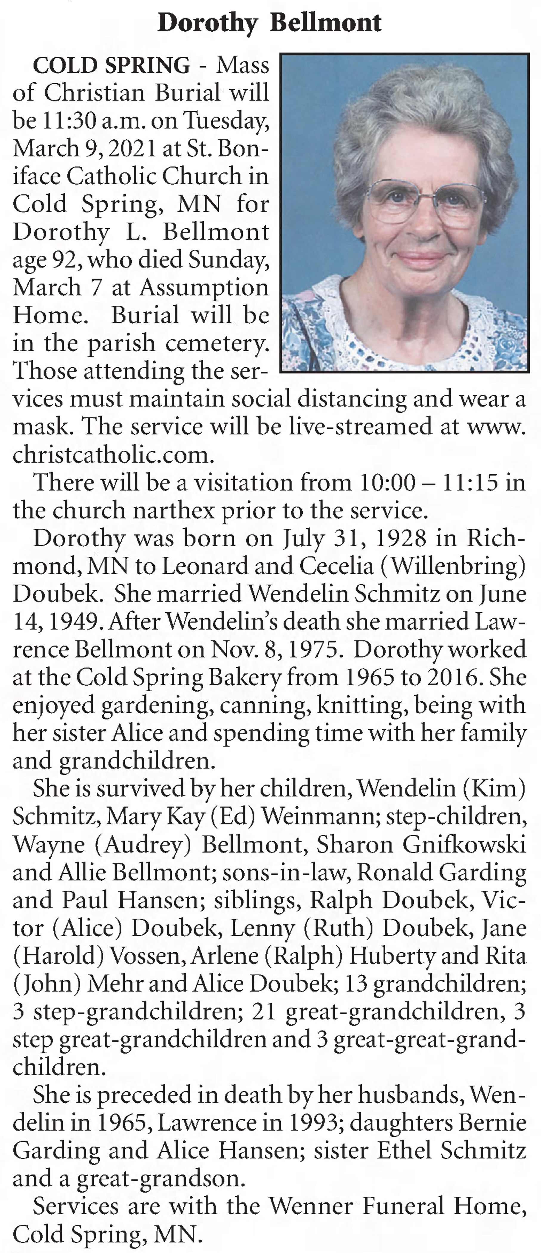 Dorothy married Wendelin Michael Schmitz on June 14, 1949.