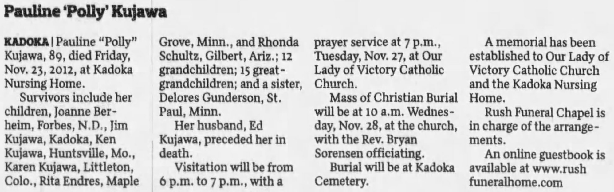 Parents: | Vincent Kujawa and Mary Gapinski |