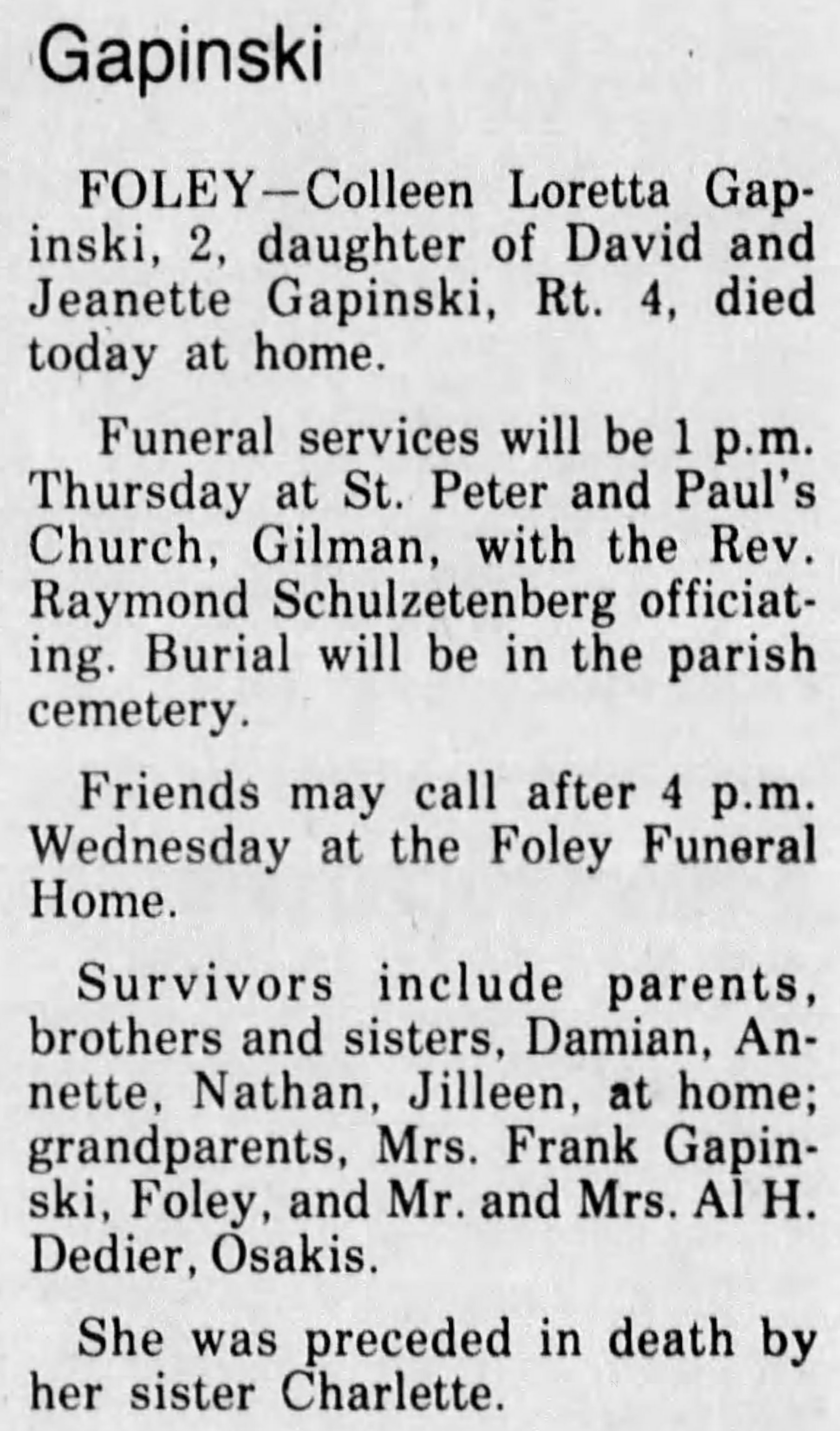 Parents: | David Gabriel Gapinski and Jeanette Mary Didier |