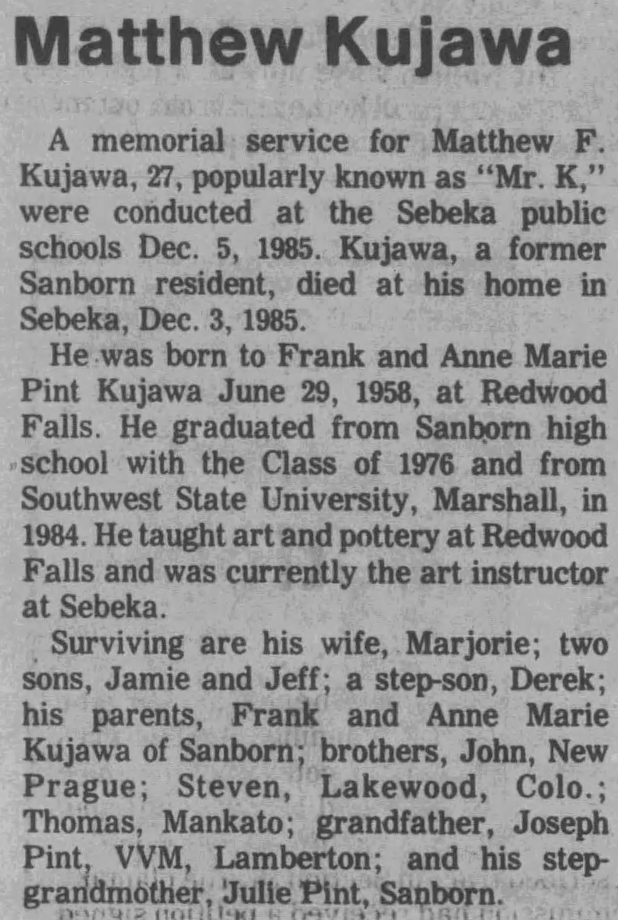 Parents: | Frank Vincent Kujawa and Anne Marie Pint |