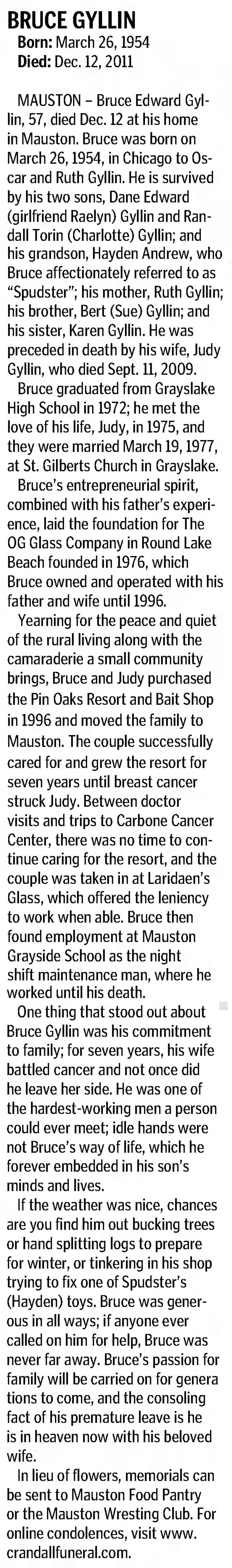 Judy married Bruce Edward Gyllin on March 19, 1977 in Grayslake, Lake Co, IL.