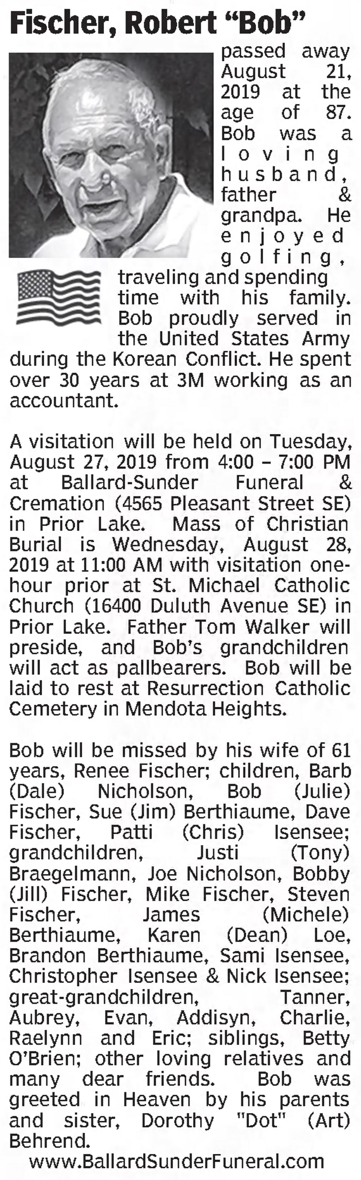 Parents: | Robert H. Fischer and Clara G. Gapinski |