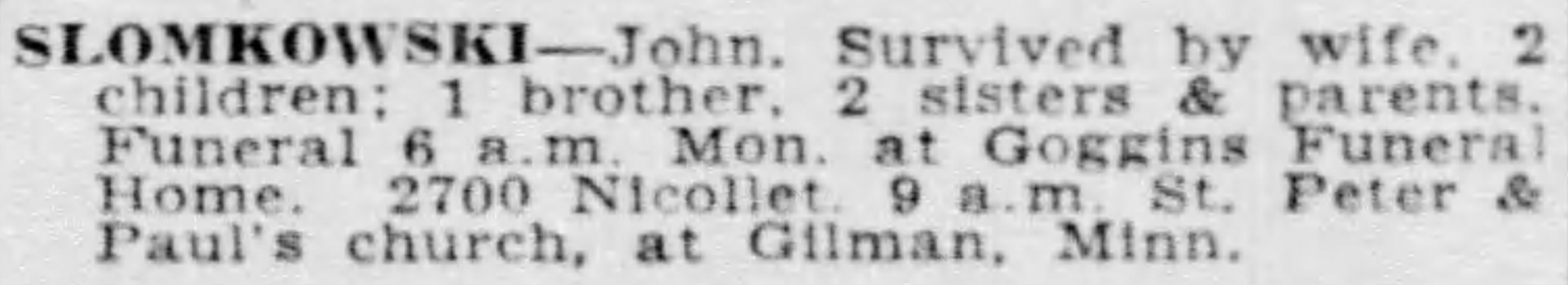Parents: | Luke Slomkowski and Mary Helen Stachowski |