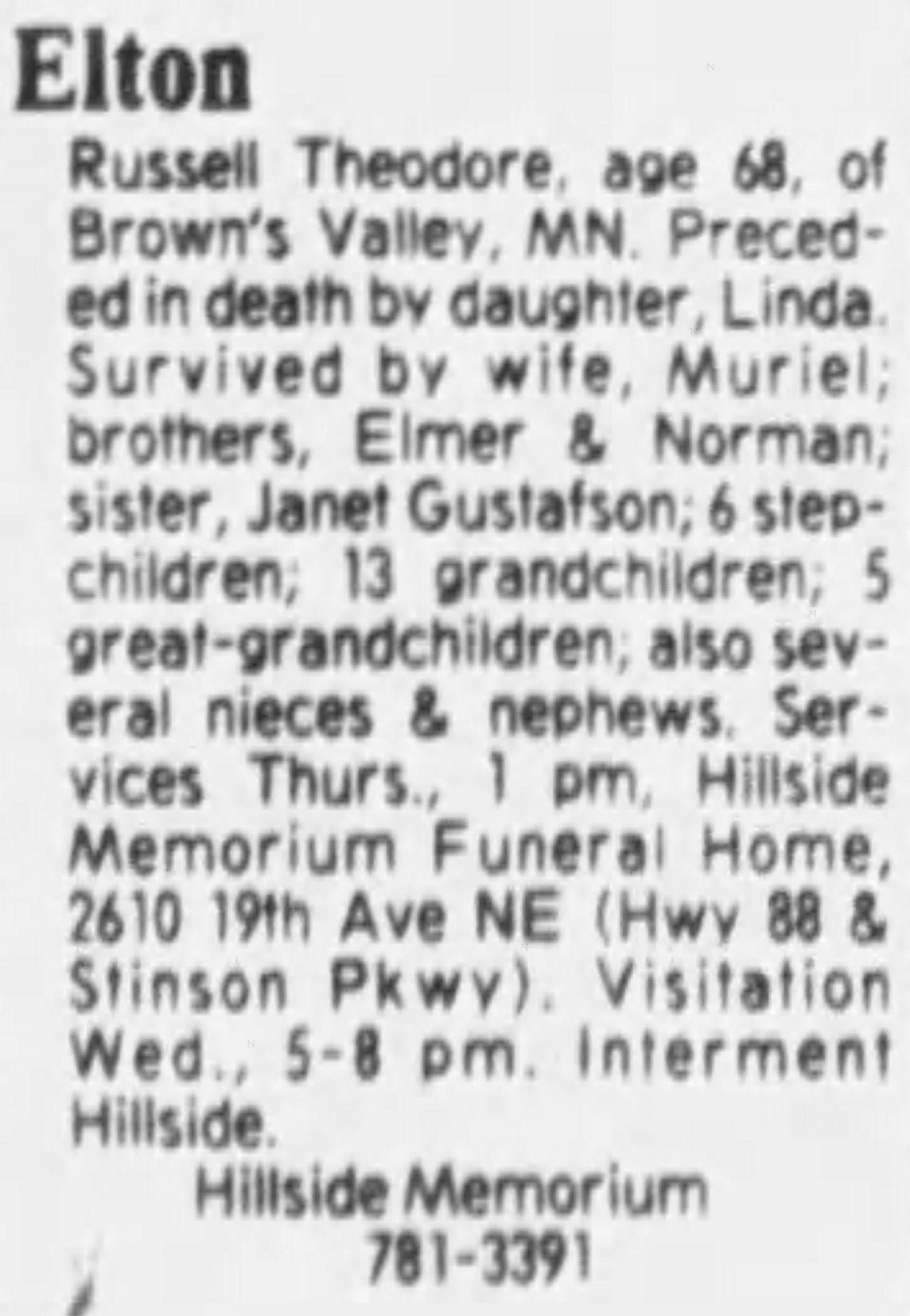 Died: | March 6, 1989 in Hennepin County, MN. View Obituary |