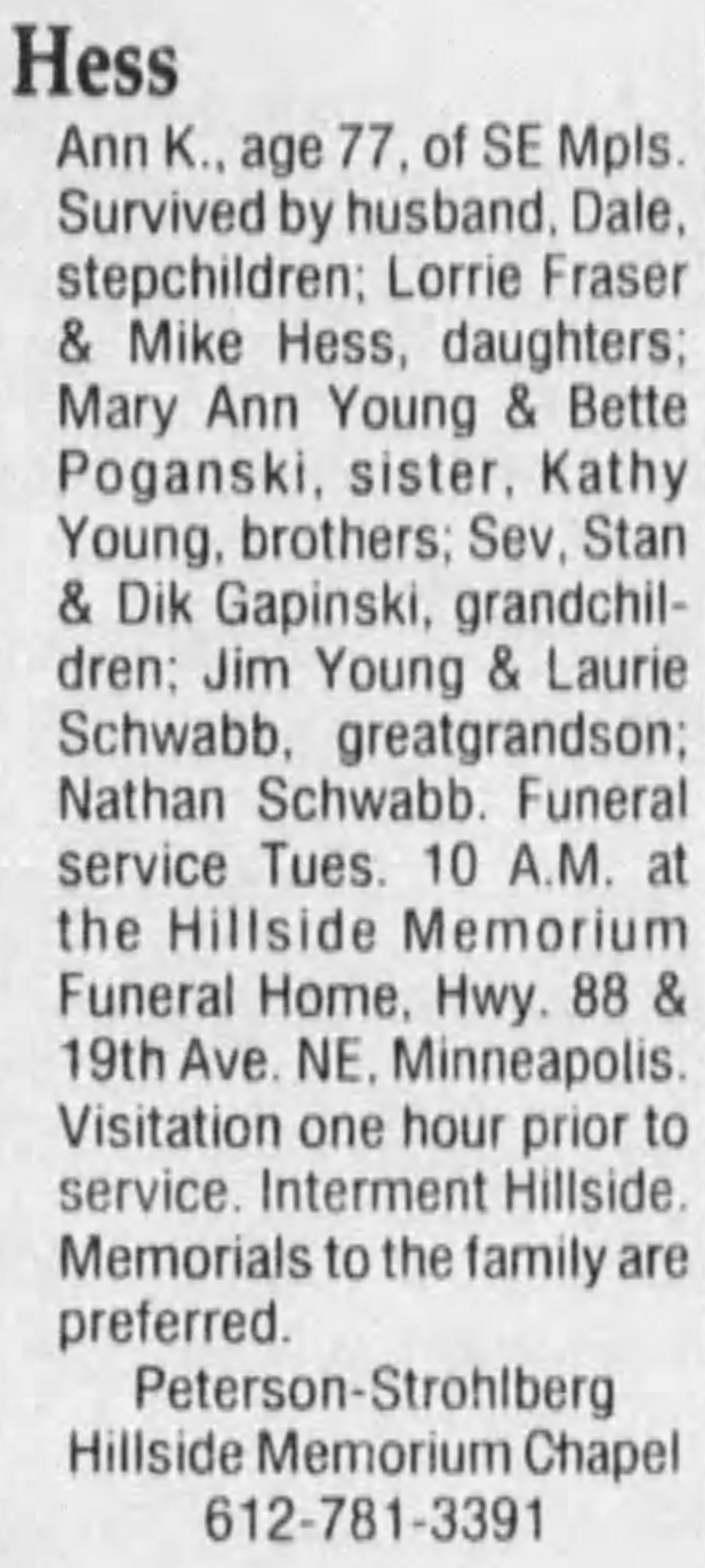 Anna married Dale M. Hess on June 19, 1969.