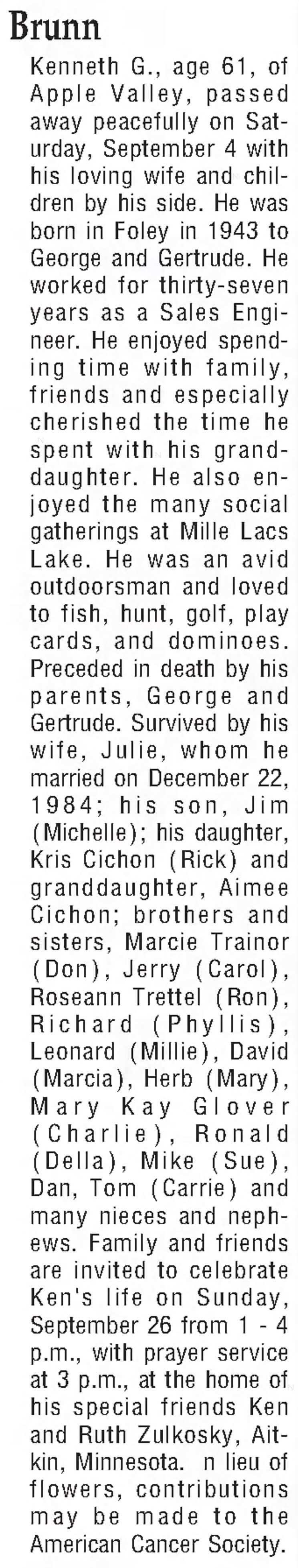 - 1950 Census - St. George Township, Benton Co, MN (Listed as Kenneth, age 6, son of George Brunn)