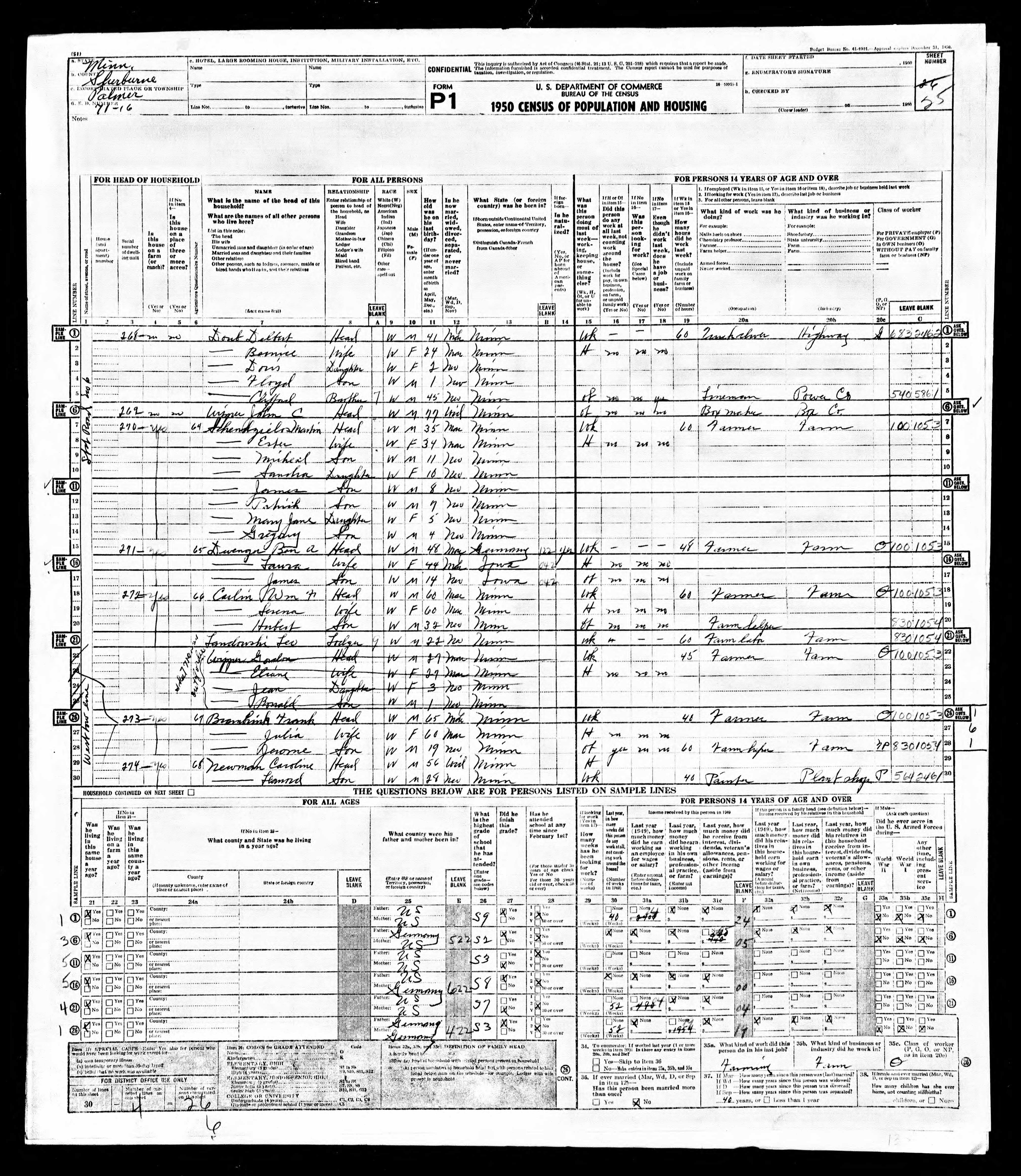 - 1950 Census - Palmer, Sherburne Co, MN (Listed as Leo Landowski, age 22, lodger of Wm F. Carlin)