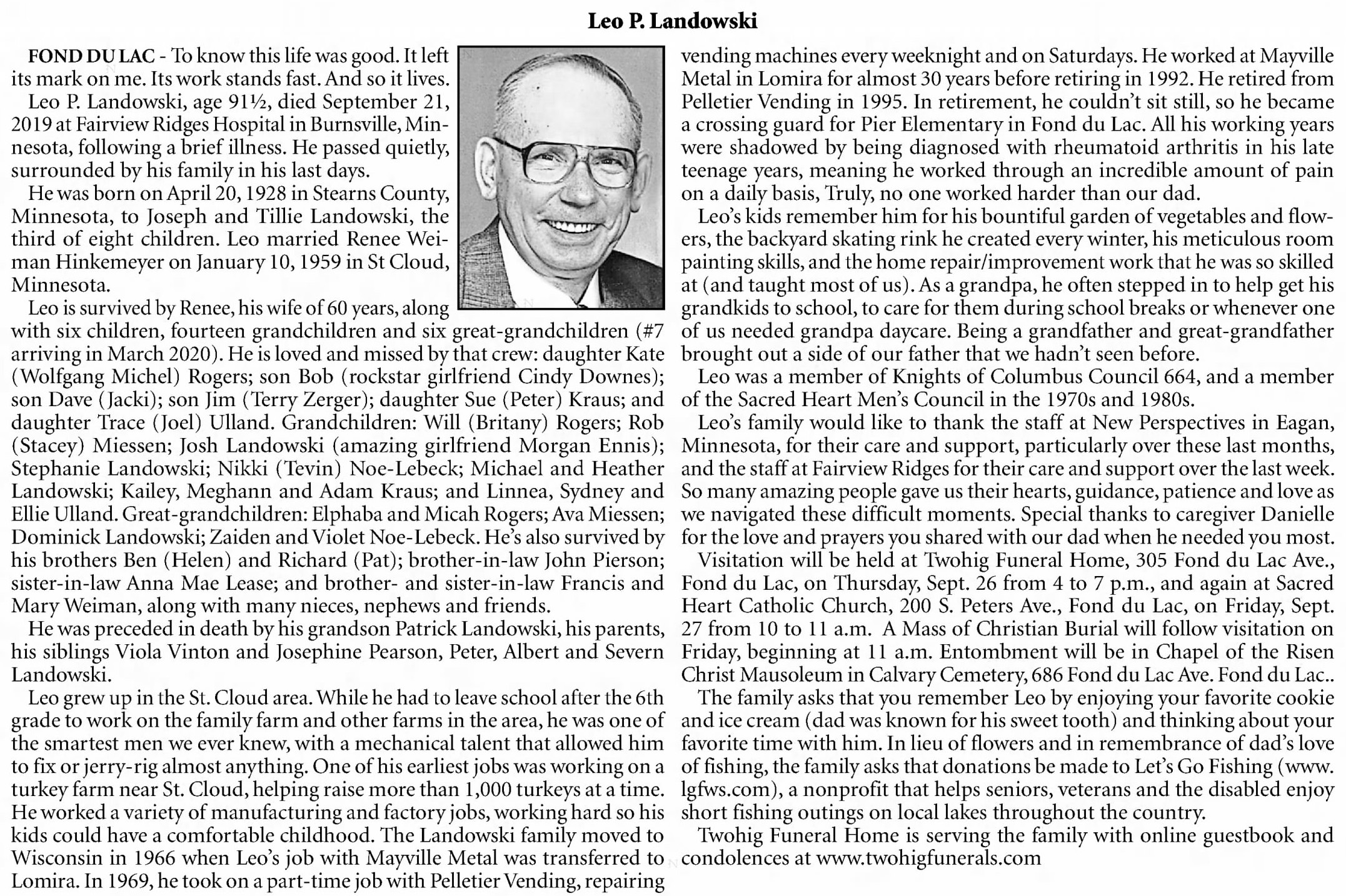 - 1940 Census - Clear Lake, Sherburne Co, MN (Listed as Leo, age 11, son of Joseph Landouski)