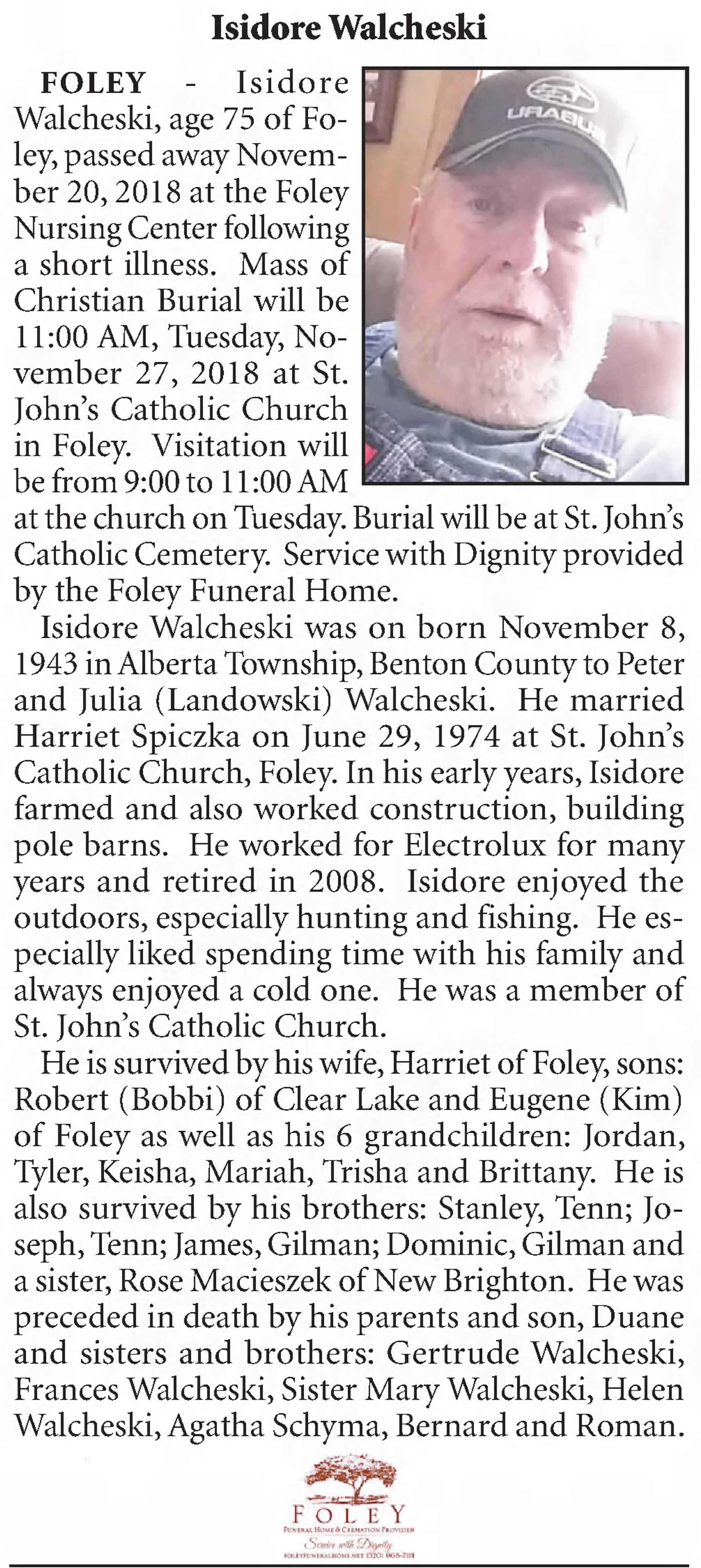 Died: | November 20, 2018 in Foley, Benton Co, MN. View Obituary |