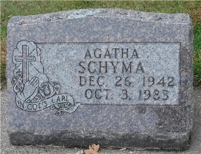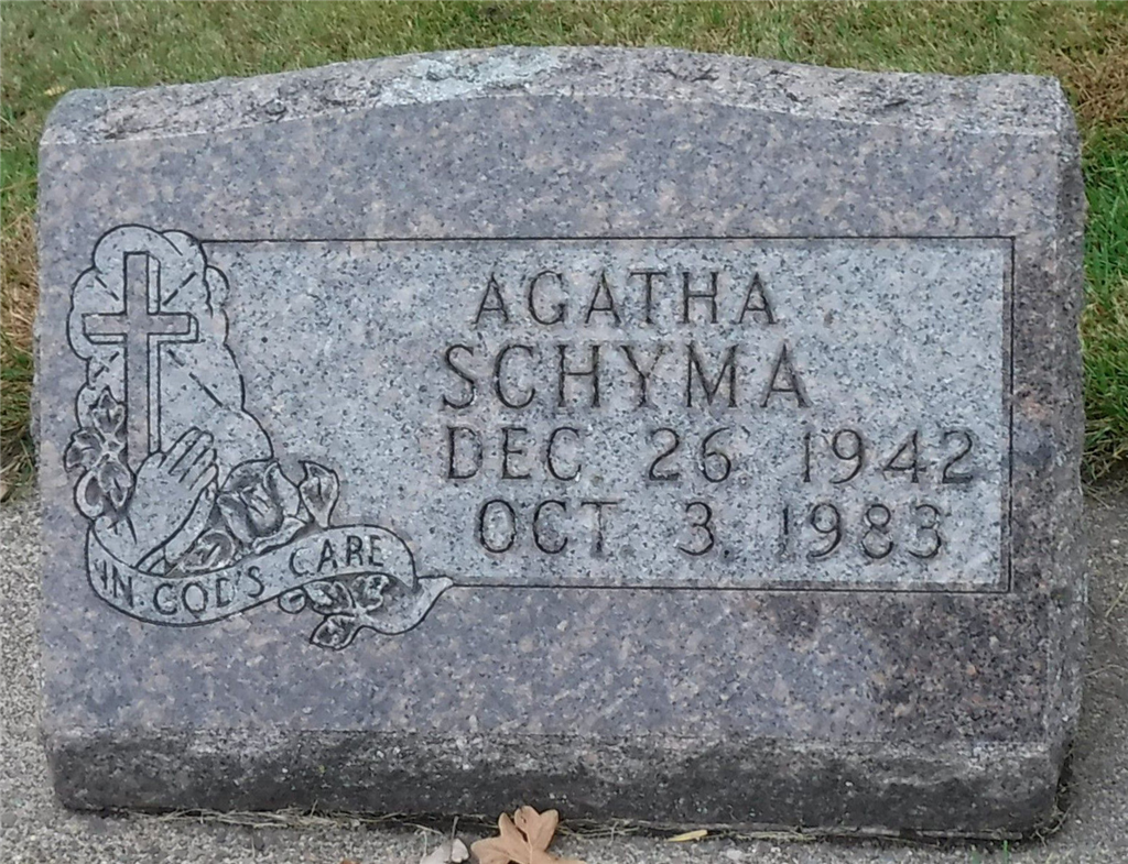Agatha married Dennis Vincent Schyma on September 1, 1959 in Gilman, Benton Co, MN.