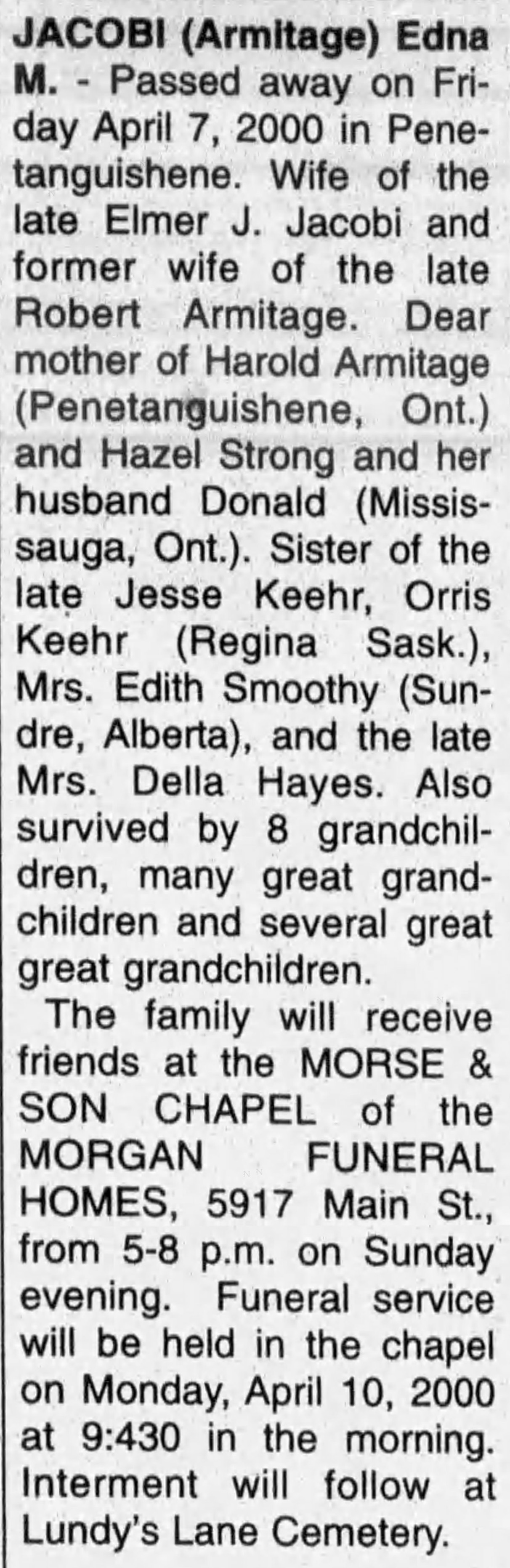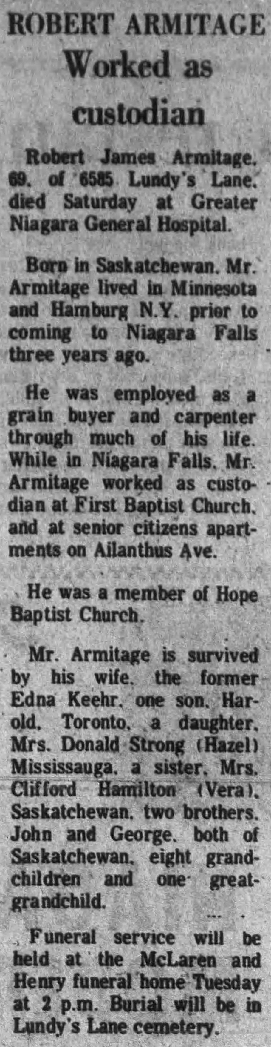 Edna married Robert James Armitage in 1927 in Saskatchewon, Canada.