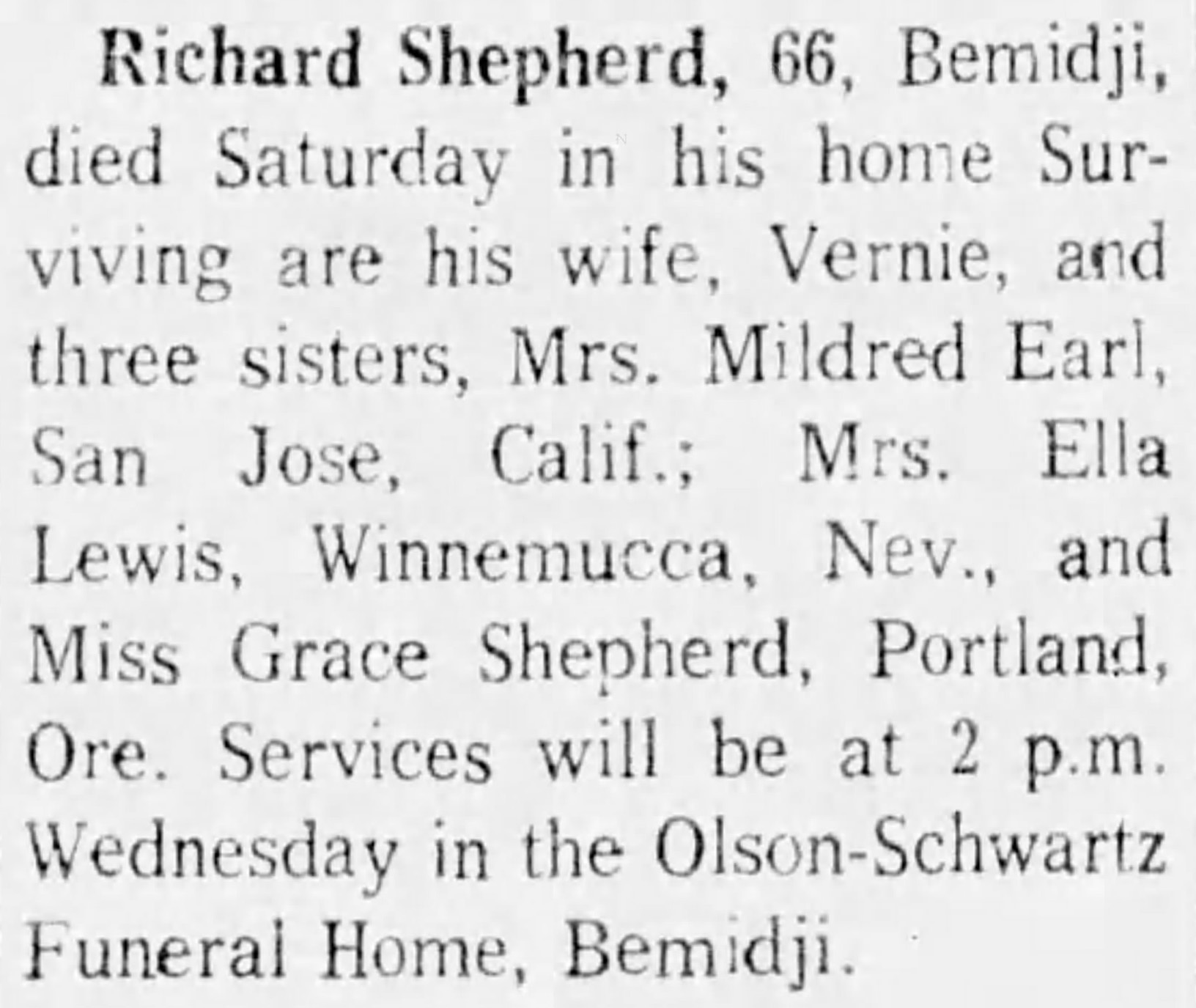| Parents: | Herbert Shepard and Olive Estella Marcellas |