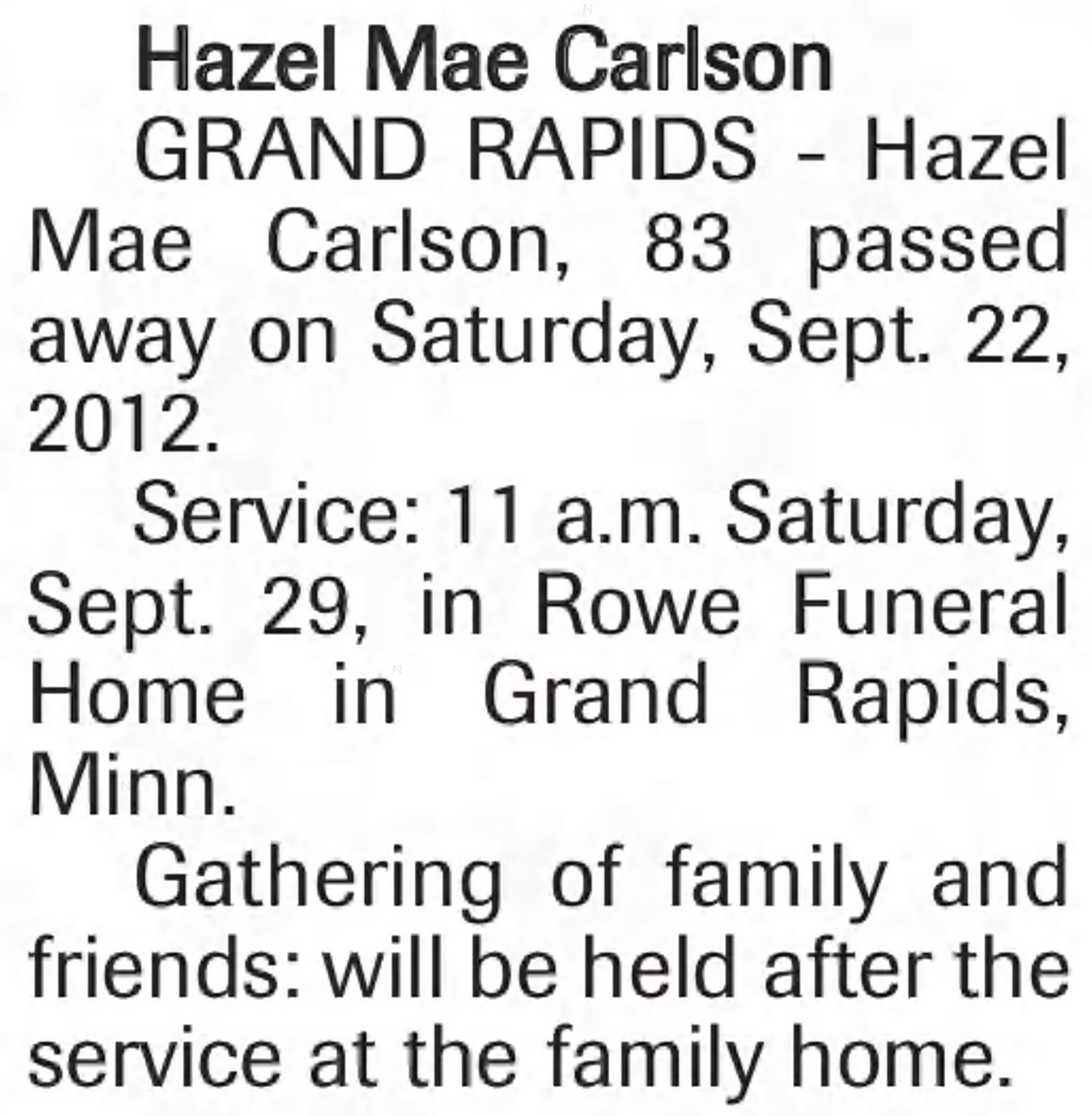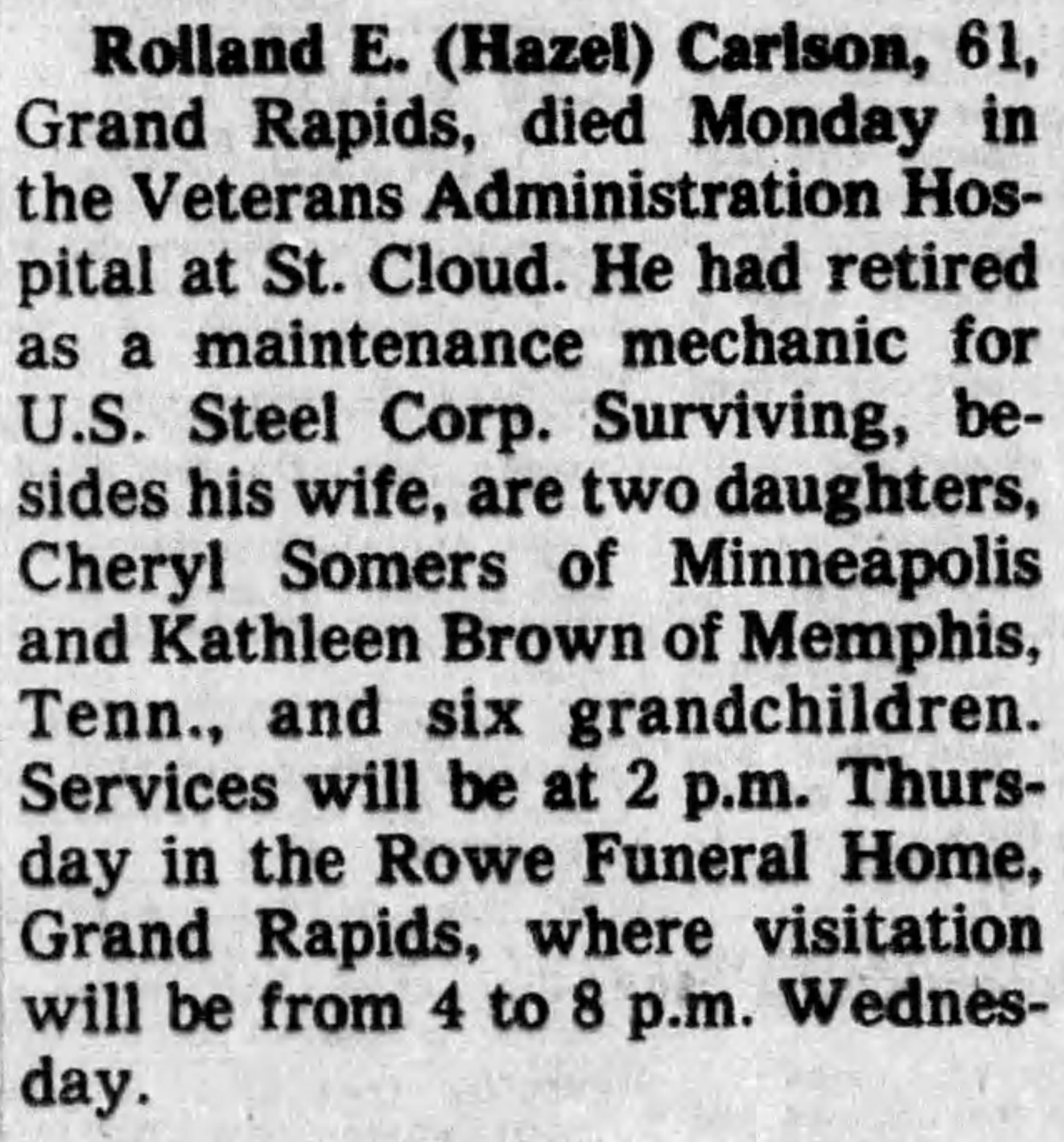 - 1950 Census - Grand Rapids, Itasca Co, MN (Listed as Hazel M., age 22, wife of Rolland E. Carlson)