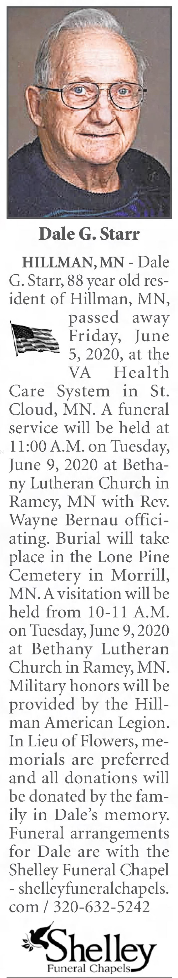 - 1940 Census - Lakin Township, Morrison Co, MN (Listed as Dale, age 8, son of Otto Starr)