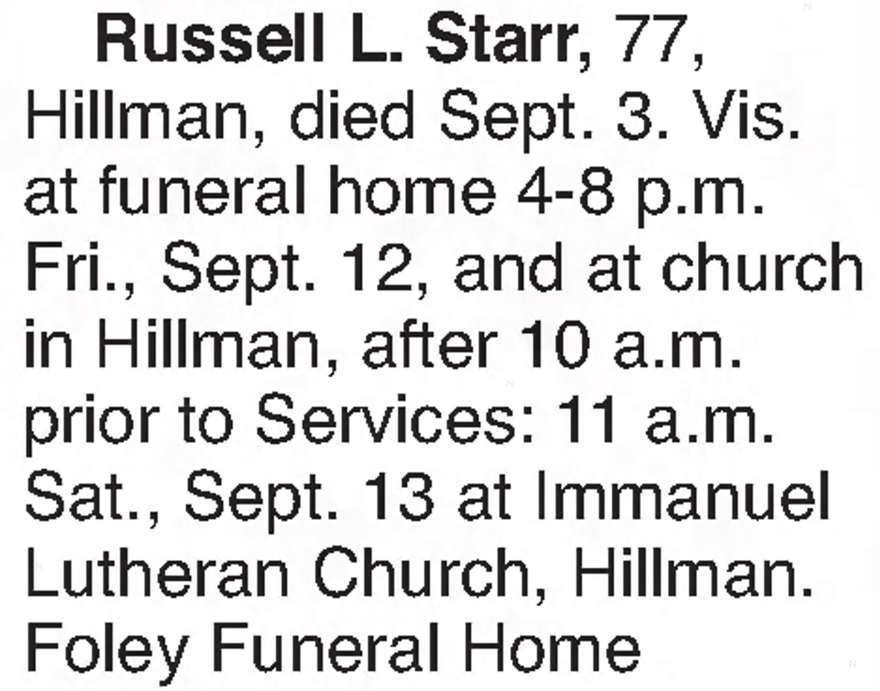 - Death Notice - Death notice for Russell
