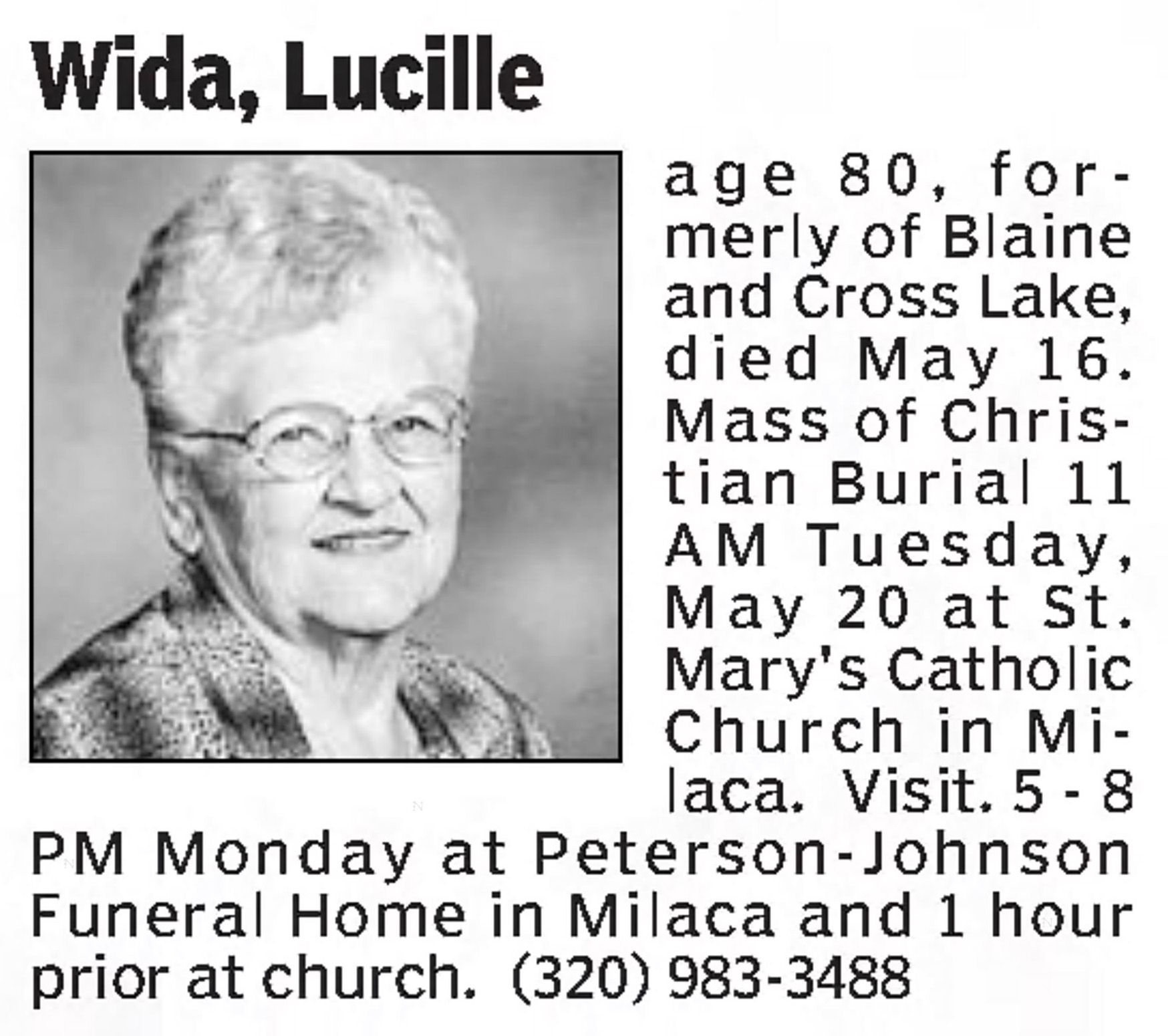 - 1950 Census - Minneapolis, Hennepin Co, MN (Listed as Lucille O., age 22, wife of Jerome L. Wida)