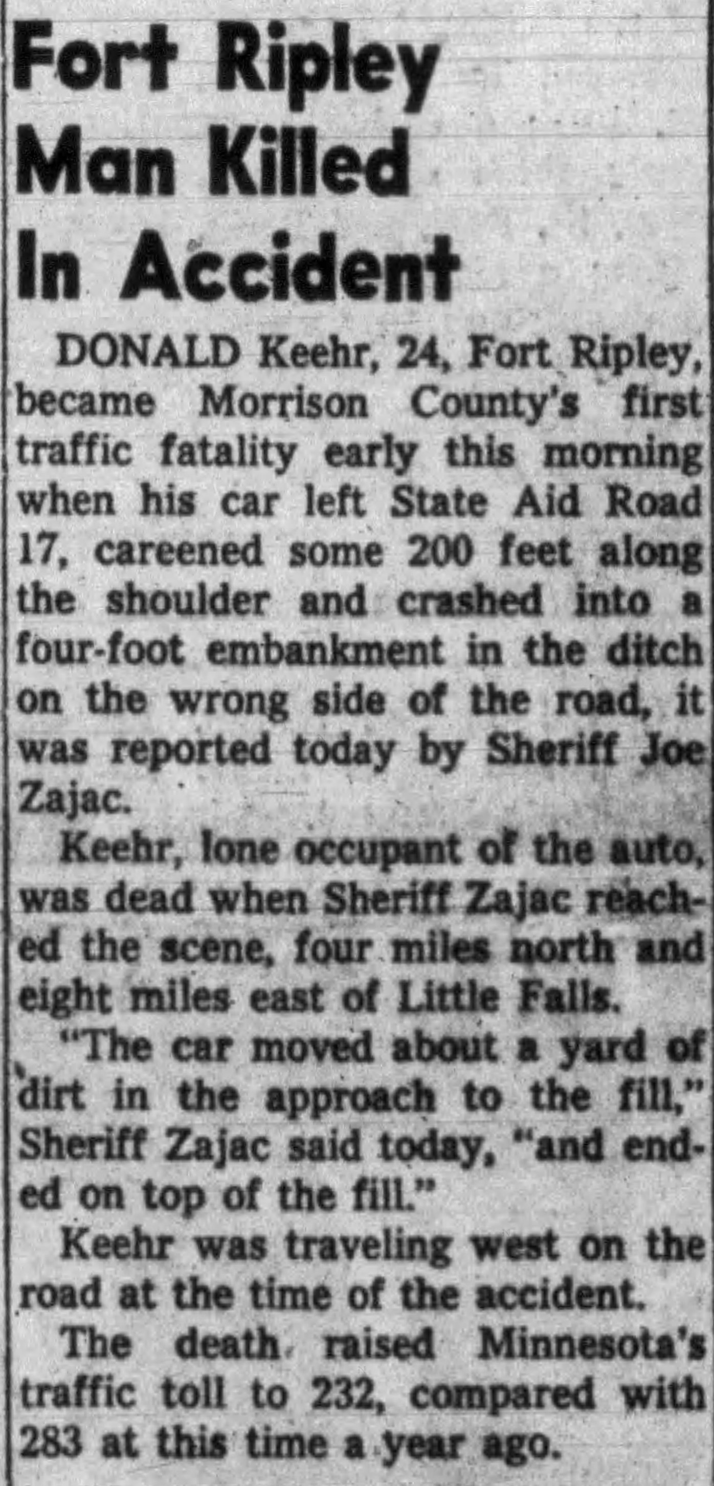 - 1950 Census - Ripley, Morrison Co, MN (Listed as Donald, age 19, son of Roy Keehr)