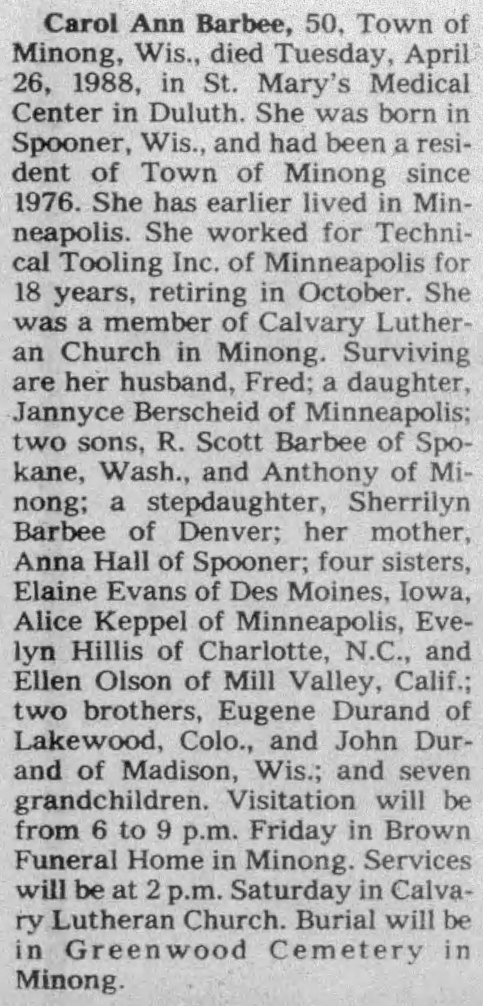 | Died: | July 15, 2020 in Shell Lake, Washburn Co, WI. |