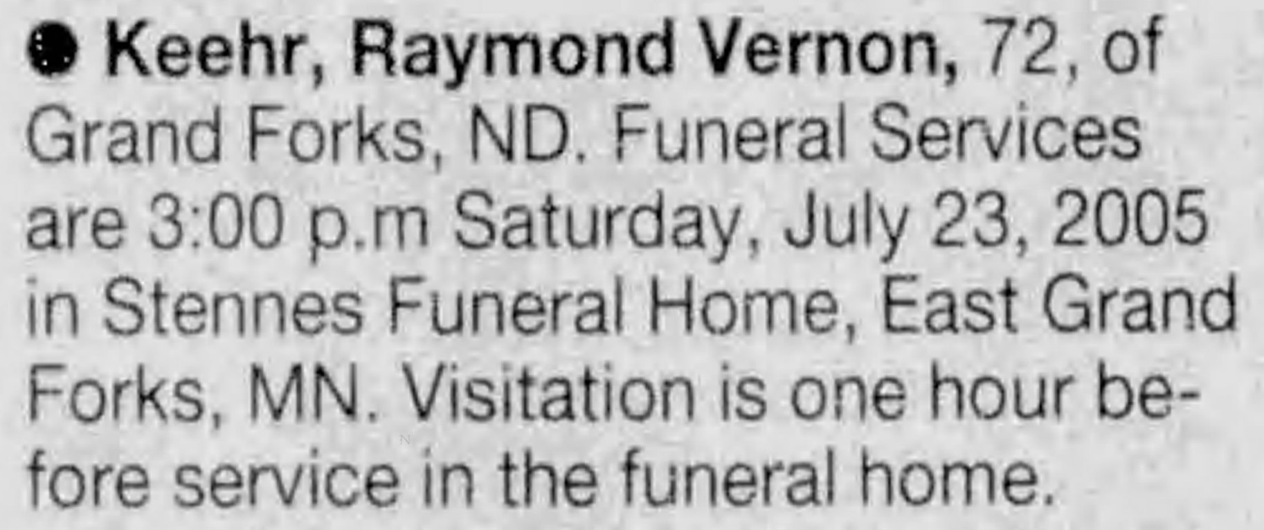 | Died: | July 21, 2005 in Grand Forks, Grand Forks Co, ND. View Obituary |