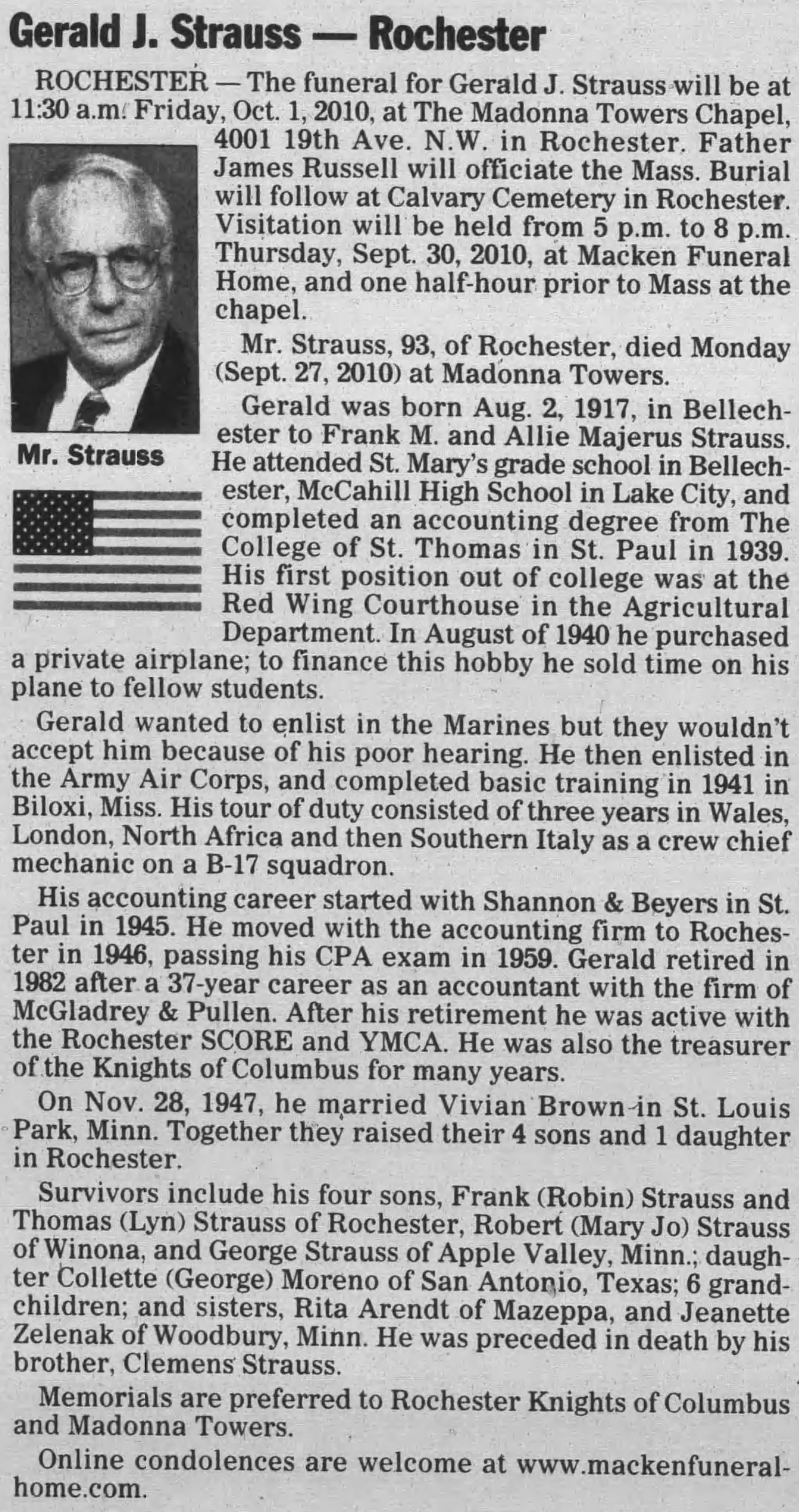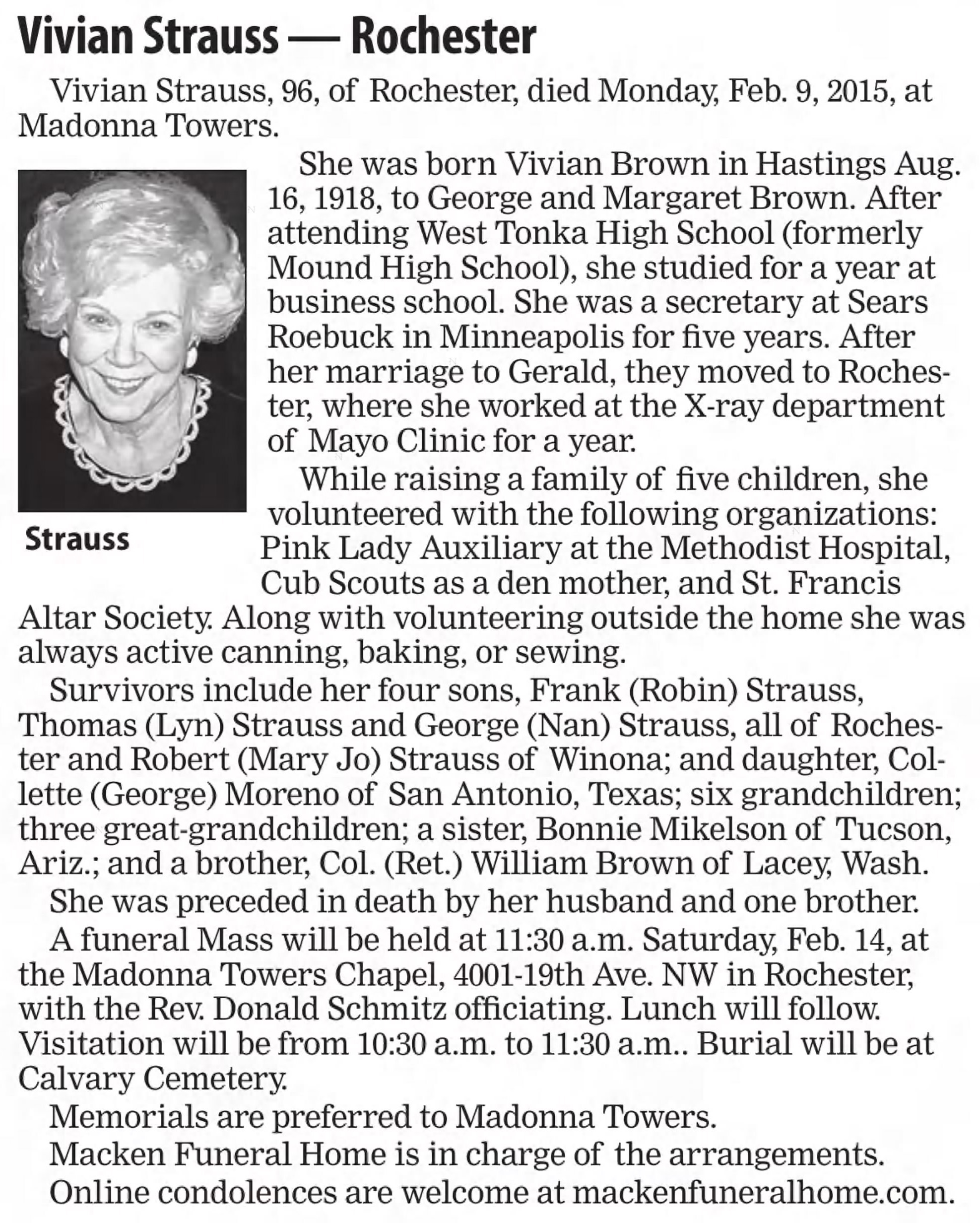 | Parents: | Frank Matthew Strauss and Margaret Alice Majerus |