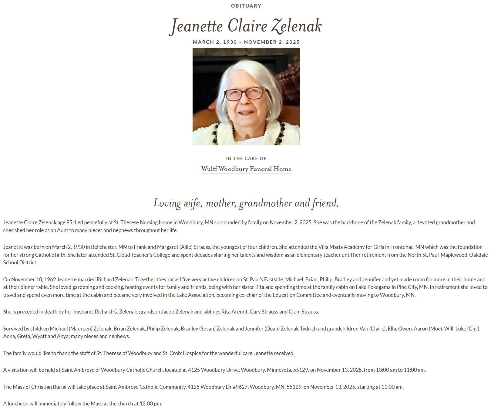 | Died: | November 2, 2025 in Woodbury, Washington Co, MN. View Obituary |