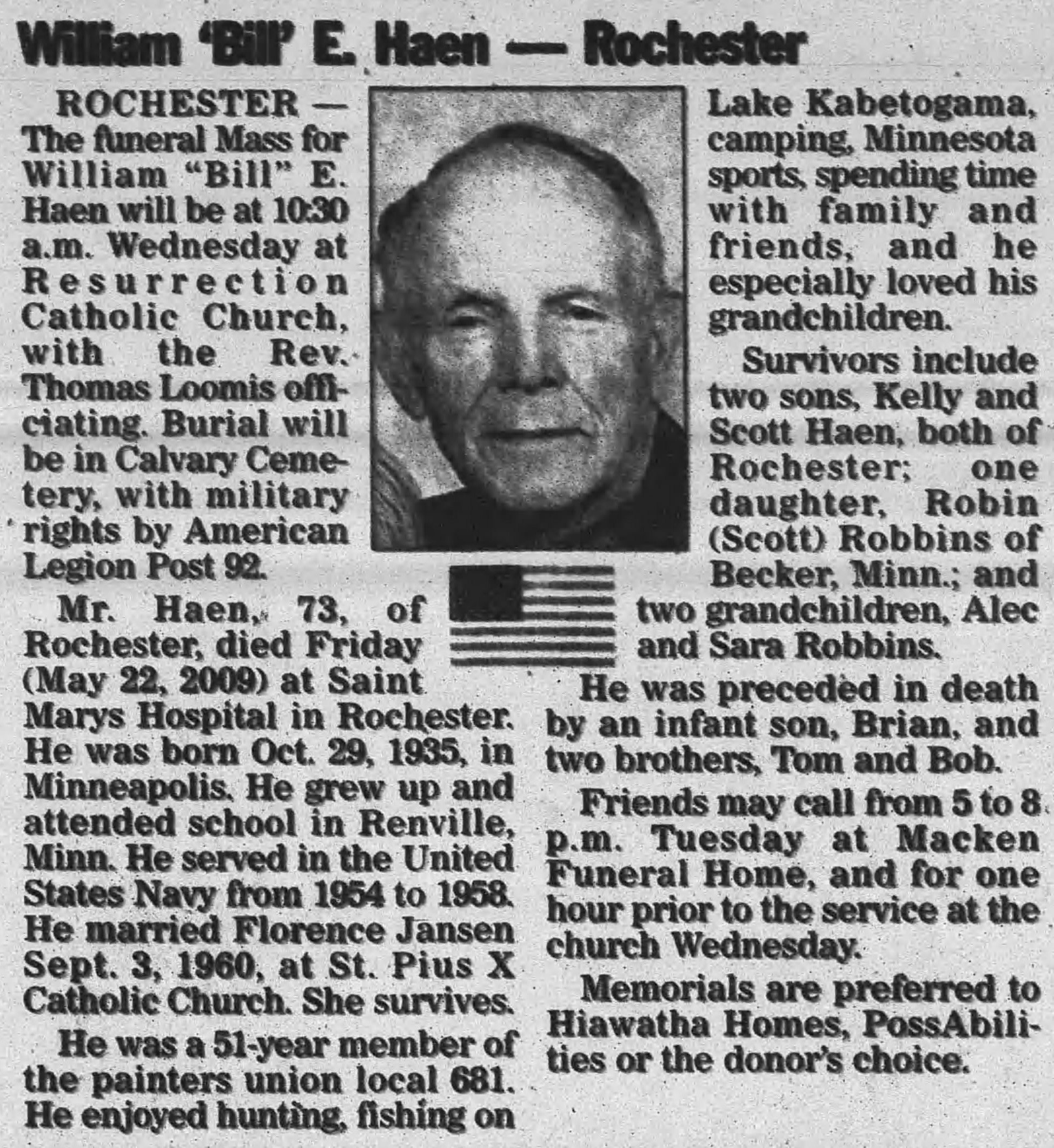 | Died: | May 22, 2009 in Rochester, Olmsted Co, MN. View Obituary |