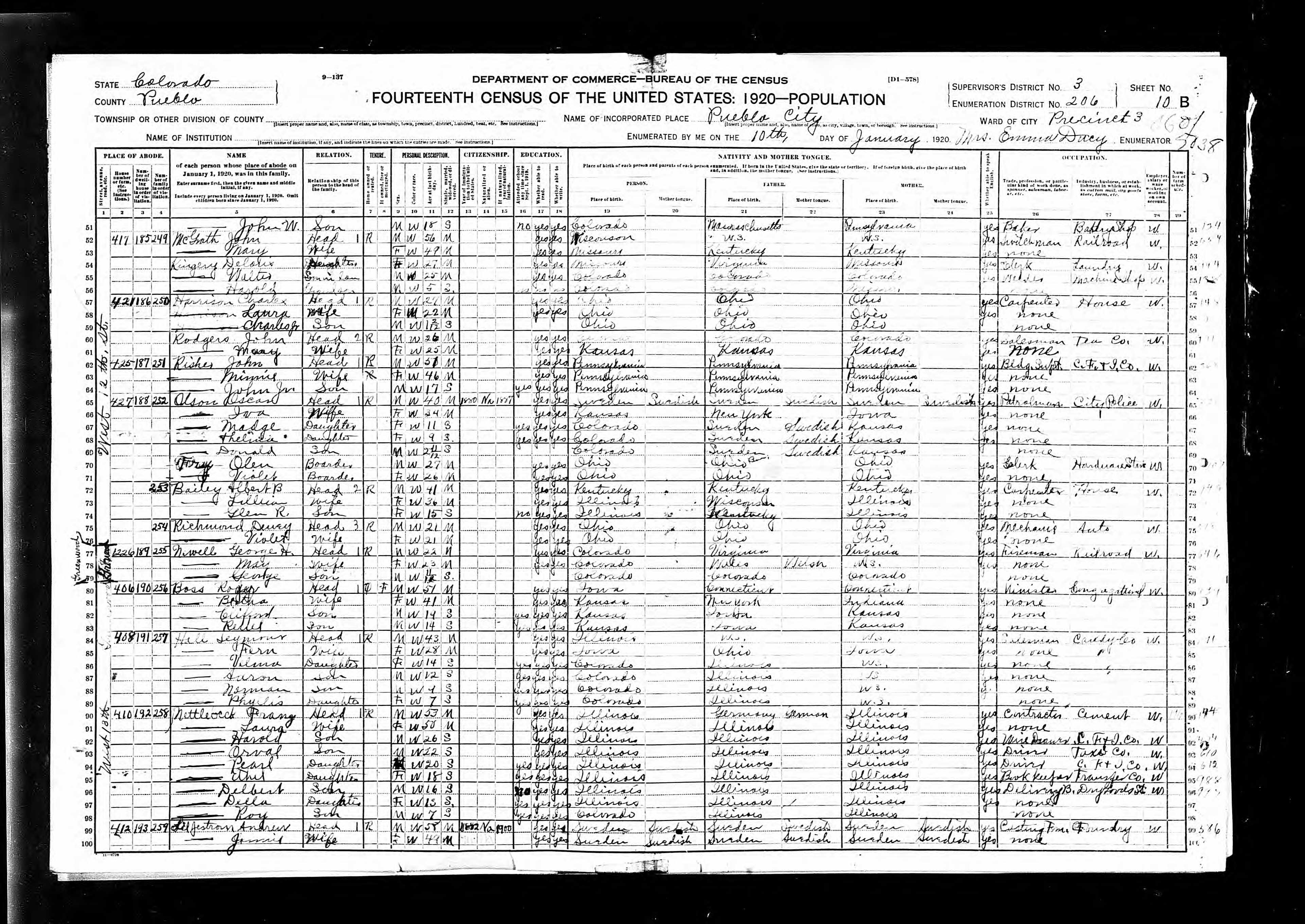 - 1920 Census - Pueblo, Pueblo Co, CO (Listed as Lillian, age 36, wife of Albert B. Bailey)