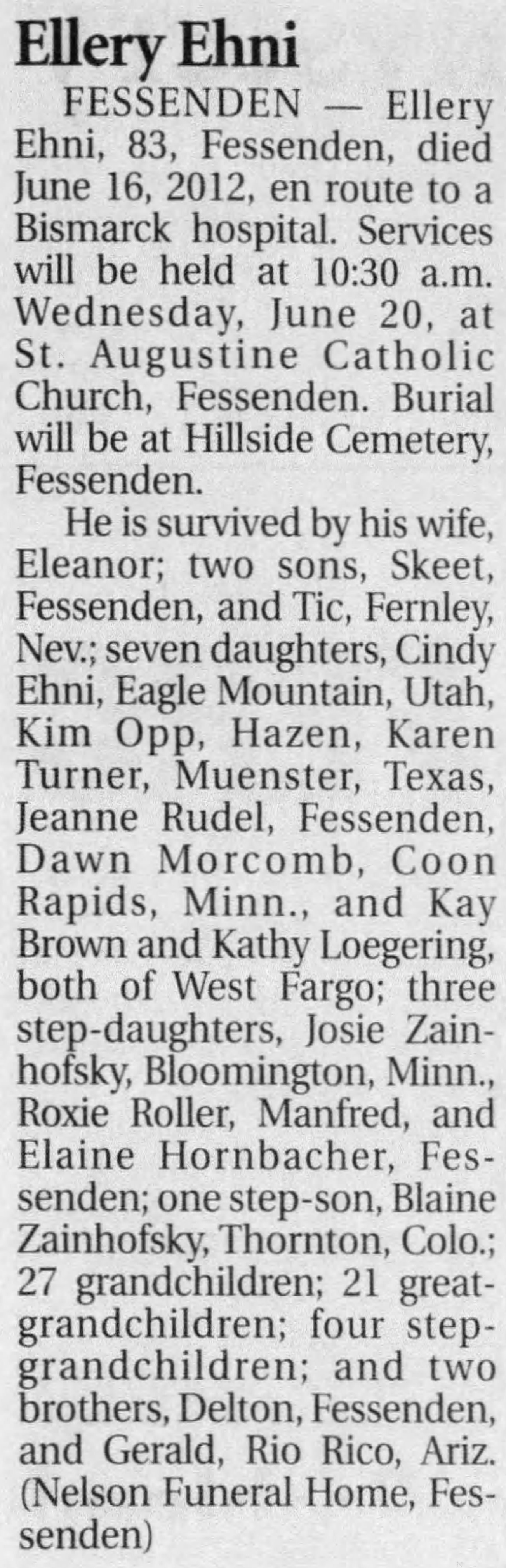 | Buried: | Hillside Cemetery, Fessenden, Wells Co, ND. |
