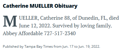 | Died: | June 12, 2022 in Dunedin, Pinellas Co, FL. View Obituary |