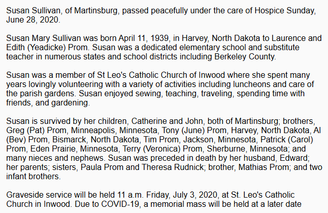 | Died: | June 29, 2020 in Berkeley County, WV. View Obituary |