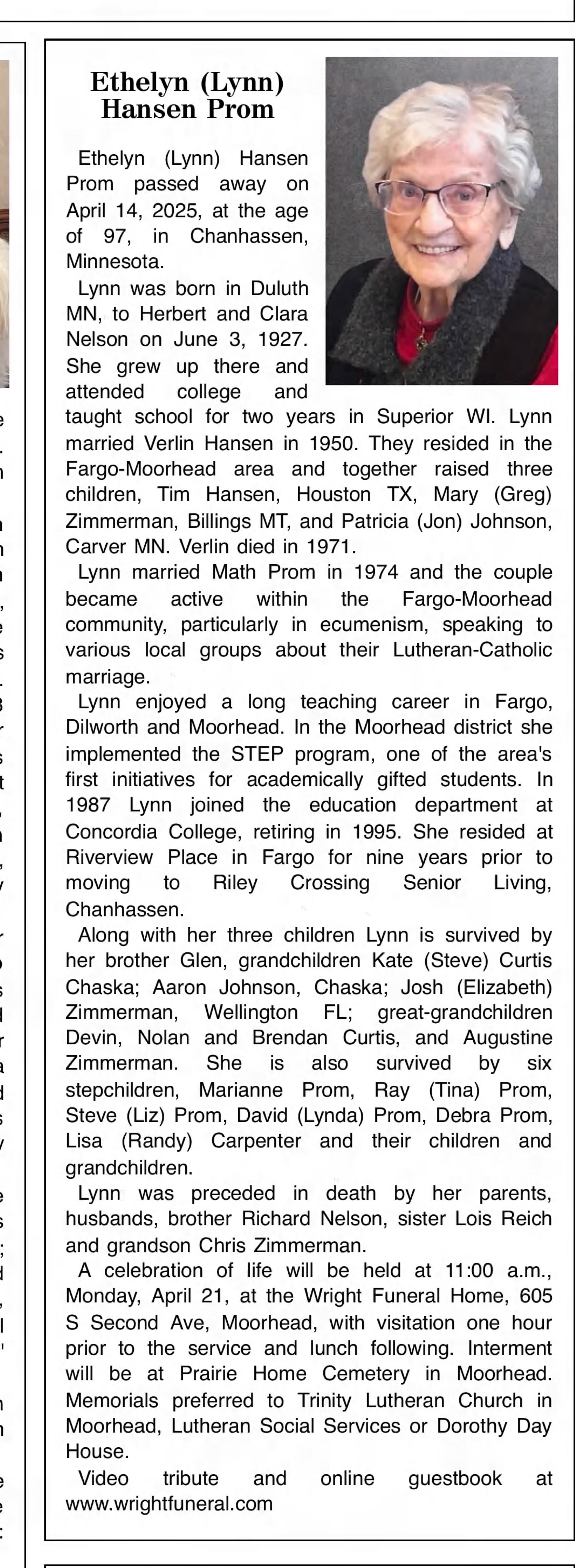 | Died: | April 14, 2025 in Chanhassen, Carver Co, MN. View Obituary |