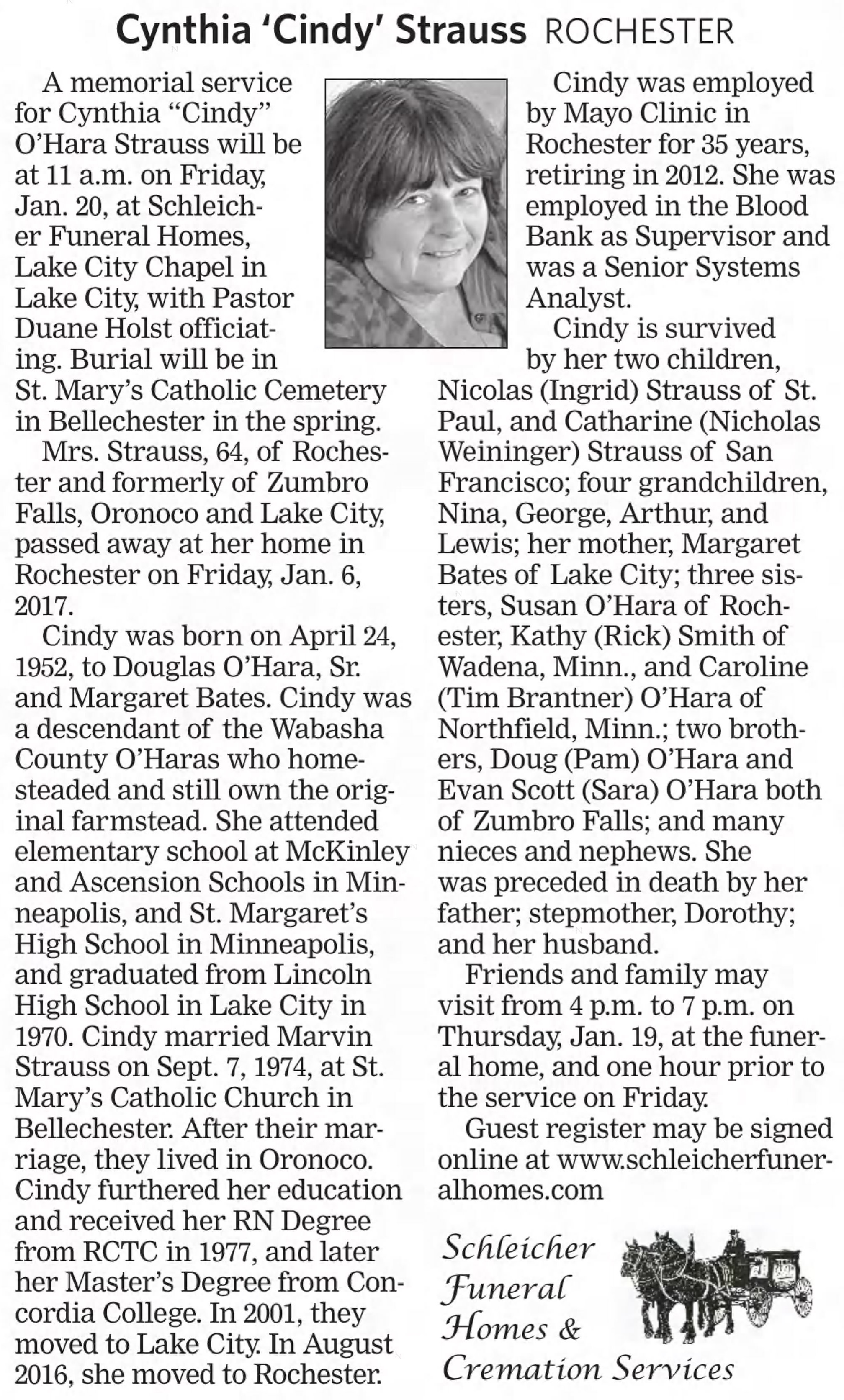 | Died: | January 6, 2017 in Rochester, Olmsted Co, MN. View Obituary |
