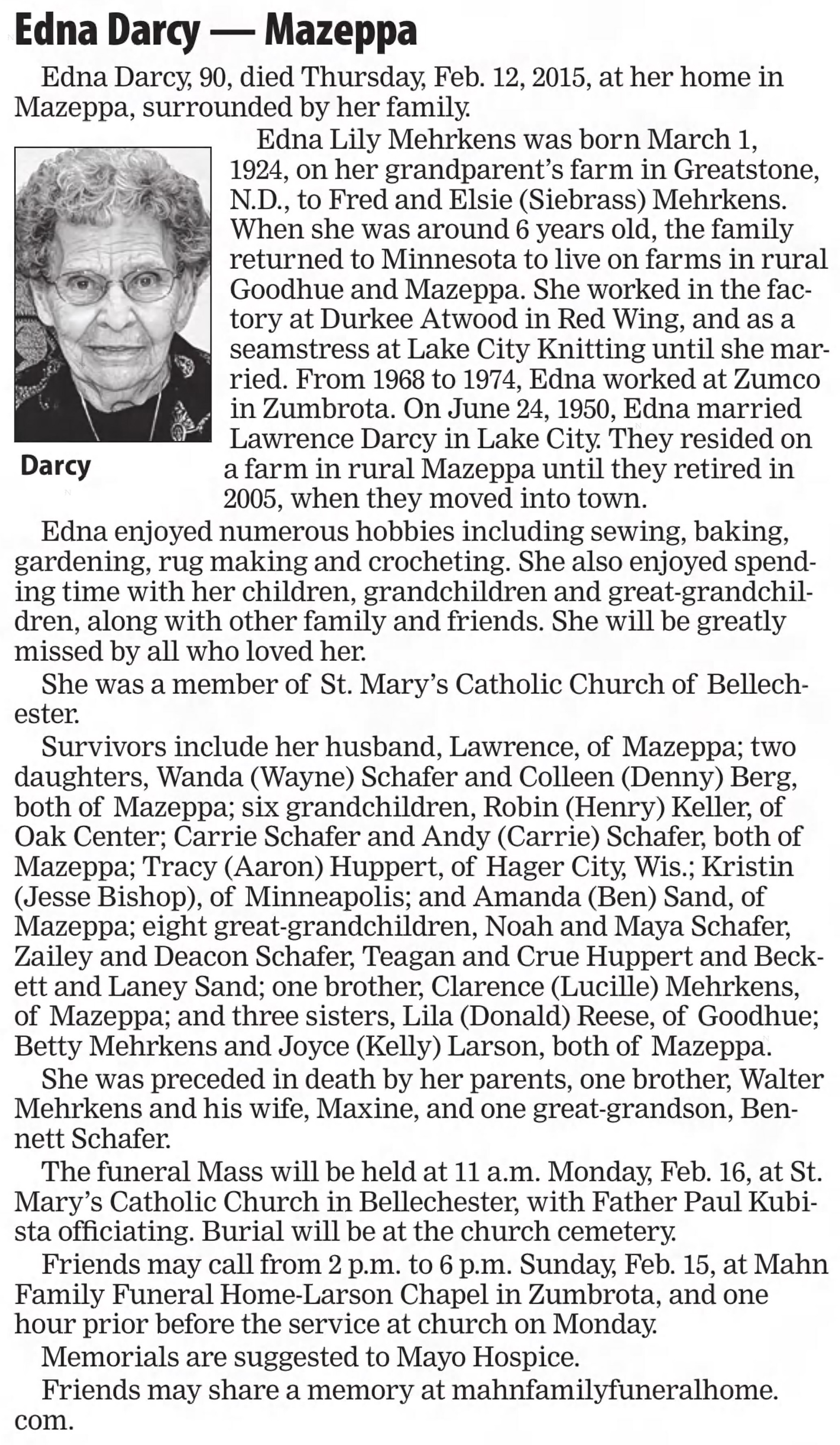 | Died: | February 12, 2015 in Mazeppa, Wabasha Co, MN. View Obituary |