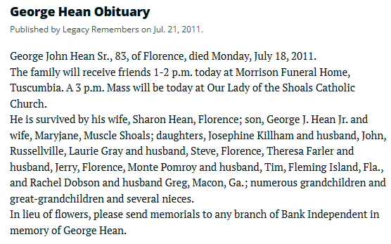 Living married George John Hean.