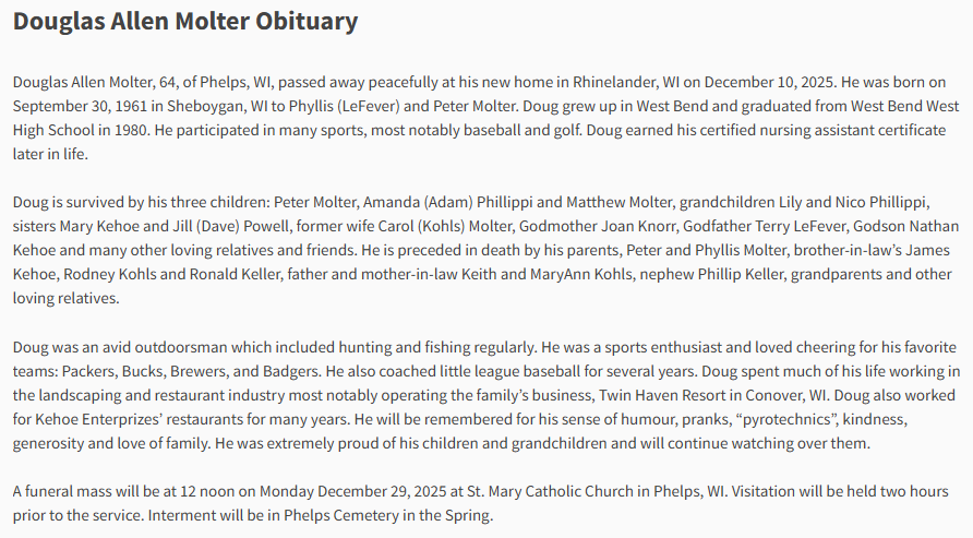 | Died: | December 10, 2025 in Rhinelander, Oneida, WI. View Obituary |