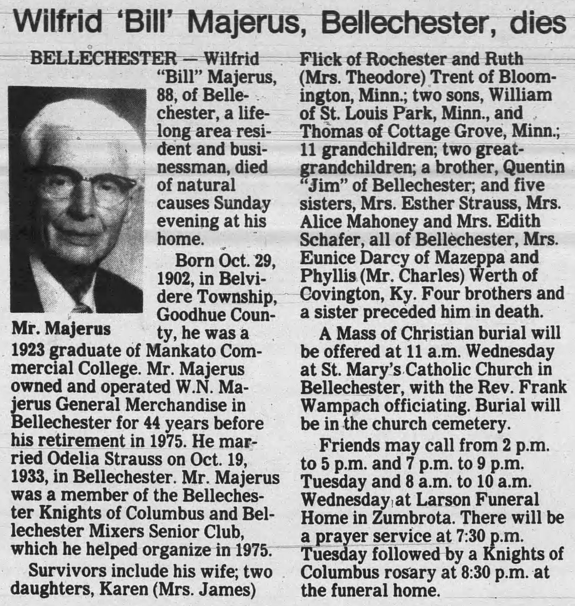 | Parents: | John Bernard Majerus and Agnes Marie Befort |