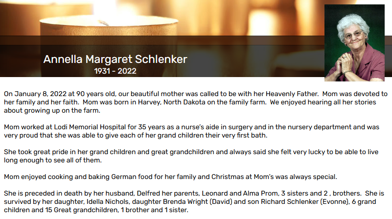 Annella married Delfred Richard Schlenker.